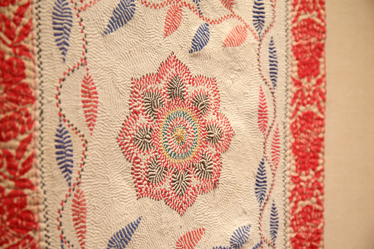 「値段にかかわらず、ひとりの人の手から生み出された一点もの、オリジナルのものというのは、時代が移り変わっても価値のあるものだと思います。このインドの刺繍は、KANTHA(カンタ)と呼ばれる刺し子で、今ではここまで精緻なものをつくれる人はいないそうです。インドへ出張した際に地元のギャラリーで買いました。これもまたアート作品といえるかもしれません。一番の贅沢はやはり時間を買うということではないでしょうか」