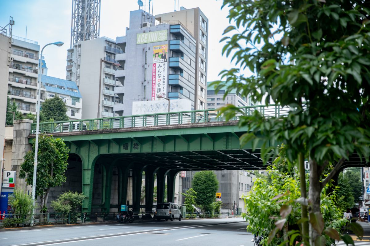 坂のある邸宅街として知られる市ヶ谷エリア。明治時代までは「市谷」、以降は「市ヶ谷」と表記されるようになった。ここは、台地が連なる地形が特徴だ。今回は、その“登山口”といえる曙橋から歩き始めることにした。1980(昭和55)年に開業した曙橋駅の階段を上がると、谷地を縫うように走る靖国通りに出る。JR市ヶ谷駅方向には外苑東通りが頭上に通り、新宿方面を見れば、坂道が交差する道路が入り組んでいる。曙橋は、まさにこのエリアの“谷”であることを感じられる。