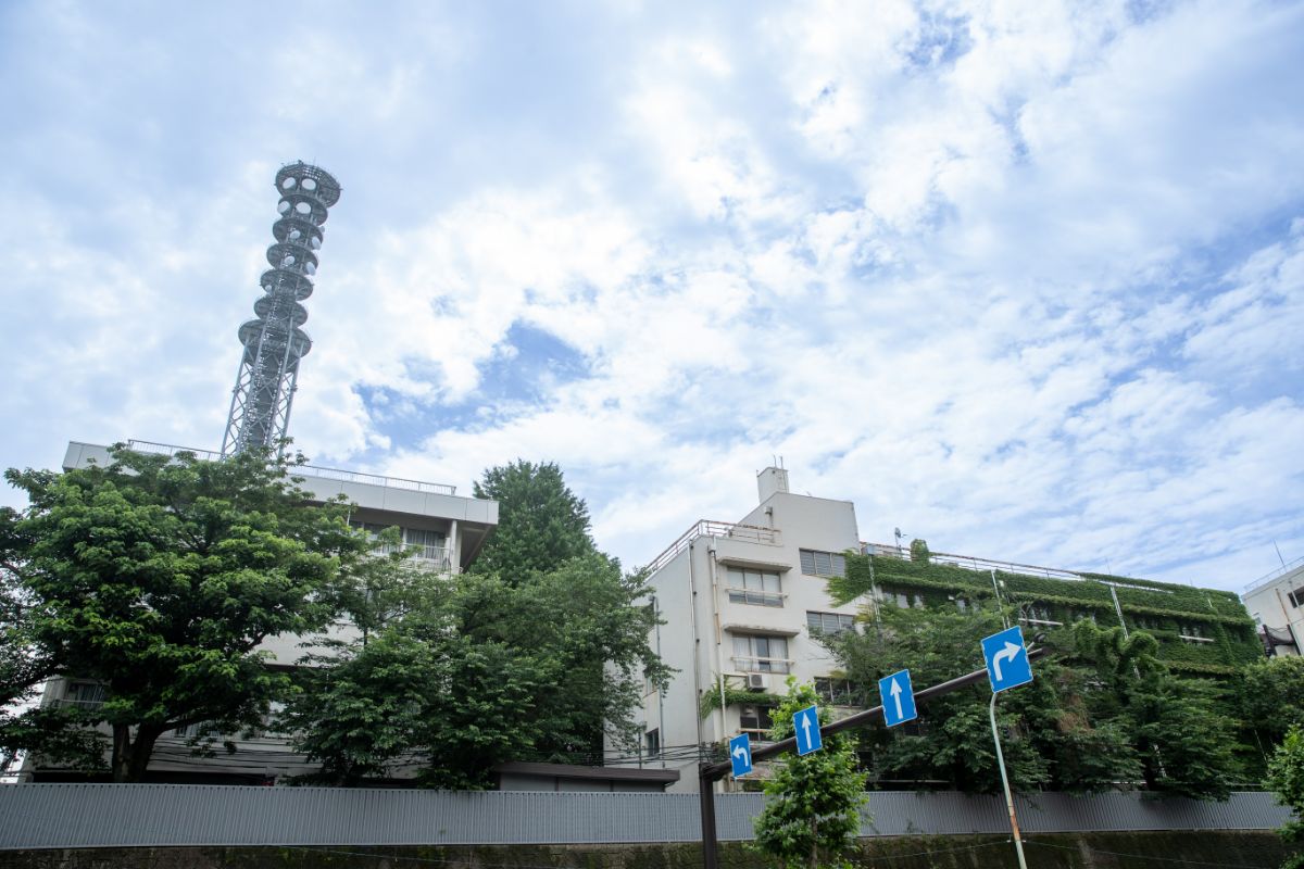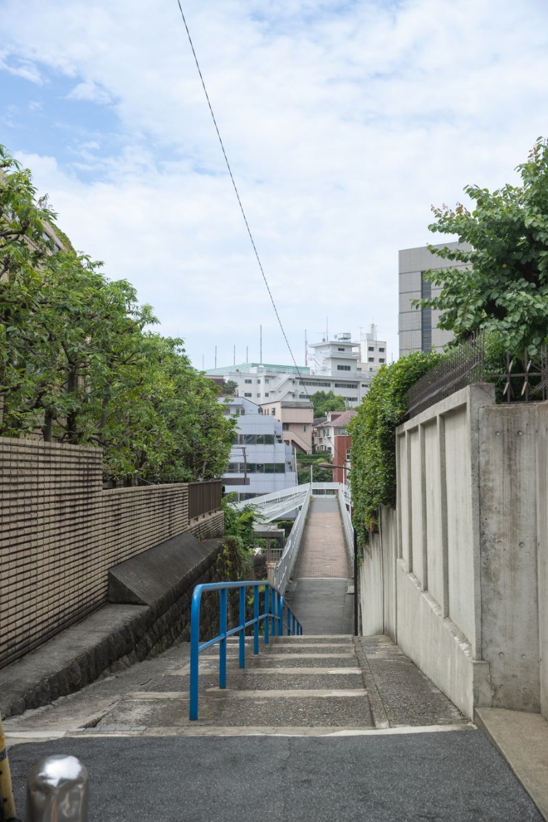 曙橋駅から、「本村台地」や「牛込台地」方面へと“登って”いくと、緑が多いことに気がつく。谷から見上げるように坂道を歩くあいだ、常に木々の緑が視界に入り、自然の存在を身近に感じる。そのまま市谷仲之町方面へと向かう。