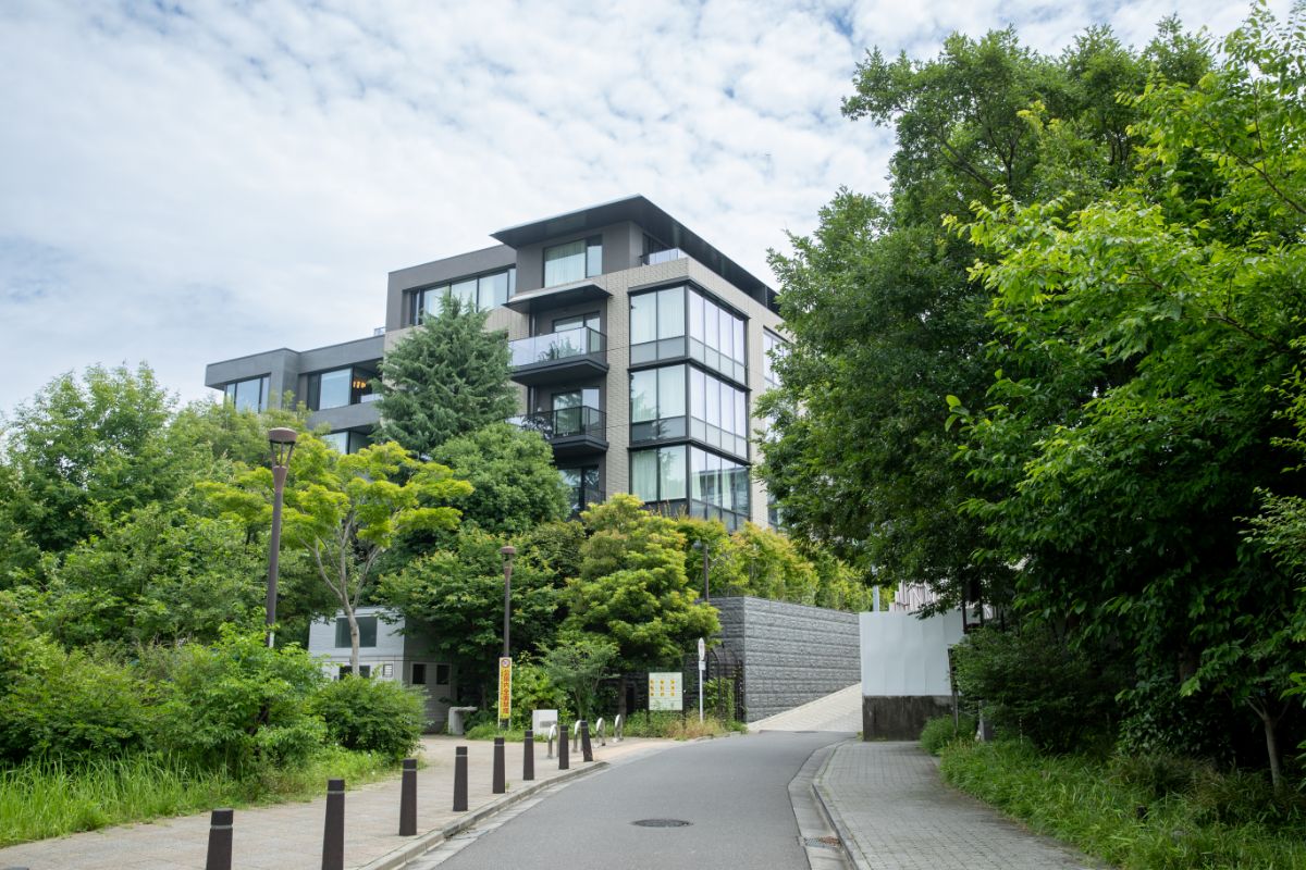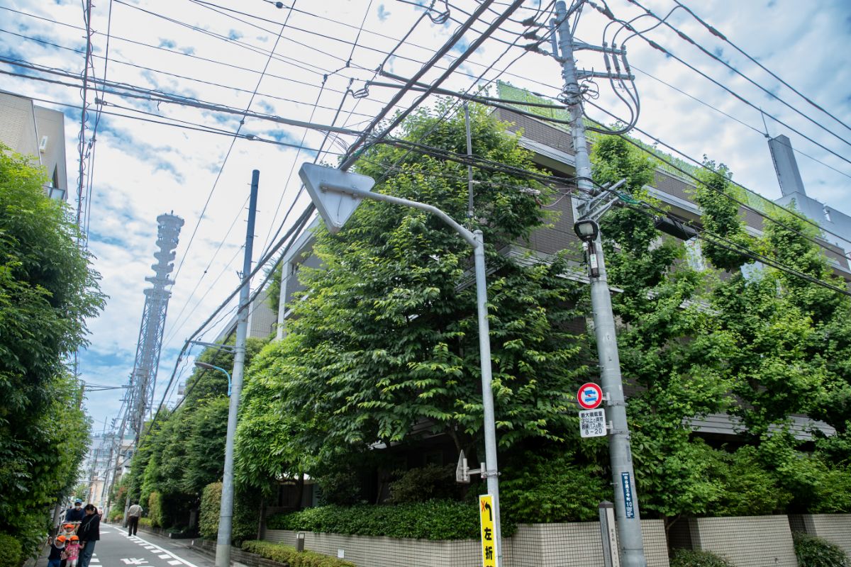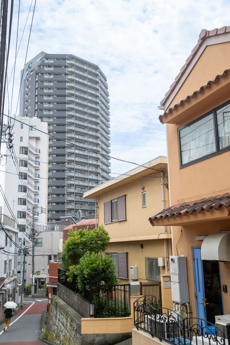 西側には学校敷地と低層の邸宅マンションが連なり、そこを守るように、東側には高層建築物がそびえる。こうした景観の対比と連続性もまた、このエリアの魅力といえるだろう。