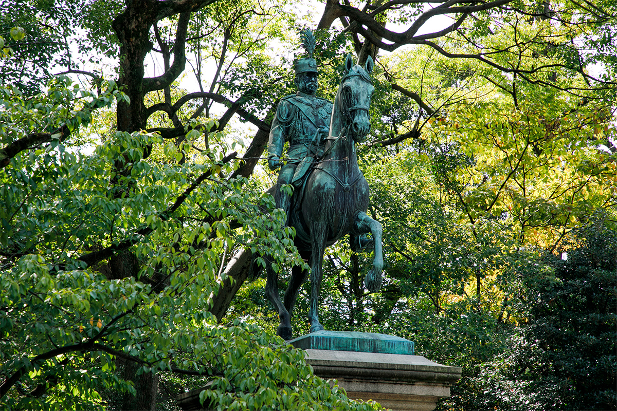 高松宮殿下は児童福祉に深い関心を寄せており、この地を子どもたちが遊べる場所にしたいと考えていたという。なるほど、その想いは今に受け継がれているようだ。馬にまたがる熾仁親王の銅像が高台から見守るなか、多くの子どもたちが遊ぶ平和な風景が見られる。