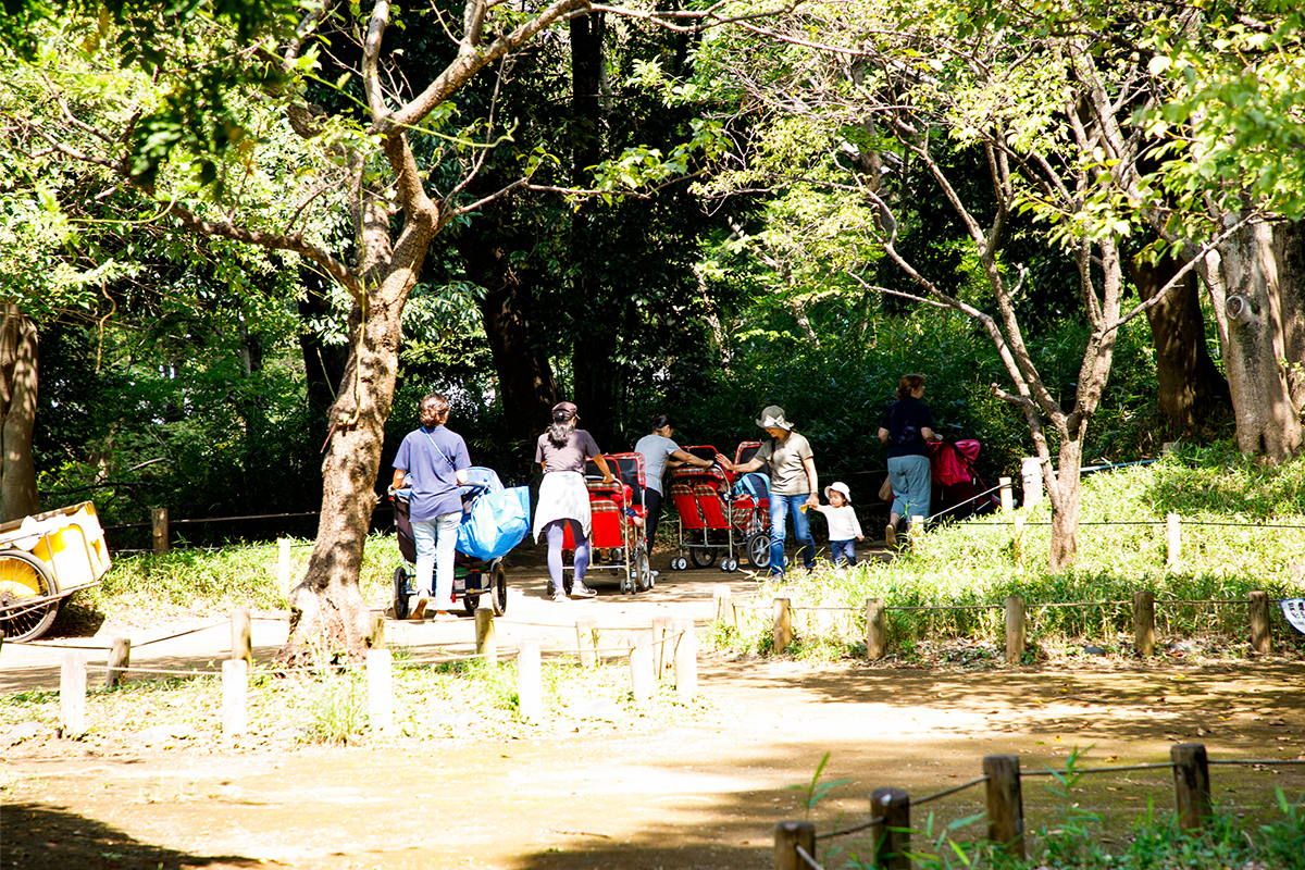 取材中に、公園で休んでいた90歳だという老紳士に話を伺うことができた。かつての公園の思い出を伺うと、「太平洋戦争時代には、この公園でみんなが燃料用の薪を集めてしまって、木には手の届くところの枝がなかったんだよ」と、街の歴史を語ってくれた。そんな時代があったことを感じられないほど、園内の高台にある児童コーナーや広場では、子どもたちが元気いっぱいに遊んでいた。