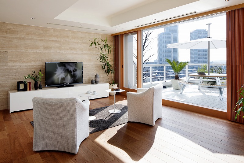 こちらはリビングスペースとテラスが一体にデザインされている事例です。