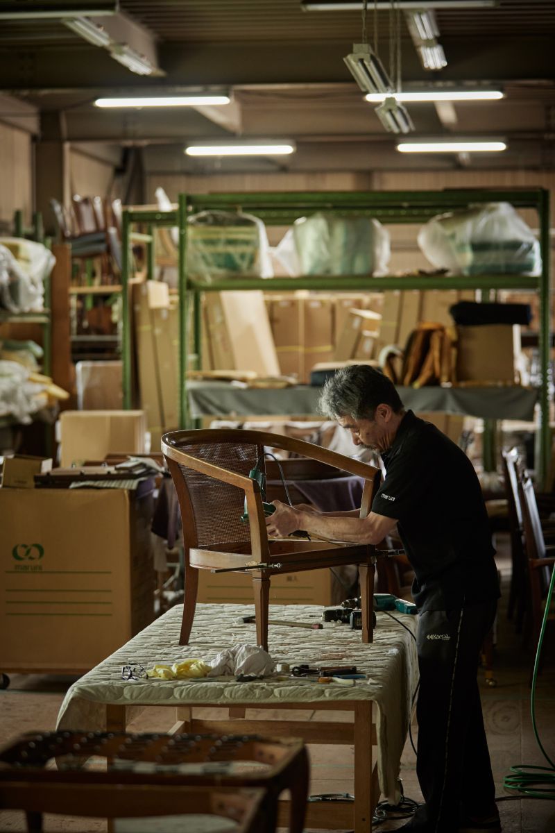 そんな“家具をなおすことの価値”に、真摯に向き合う木製家具の修理専門会社がある。茨城県坂東市の工房を拠点に、木部の修理から塗装、生地や籐木工技術を培ってきたメーカーだ。