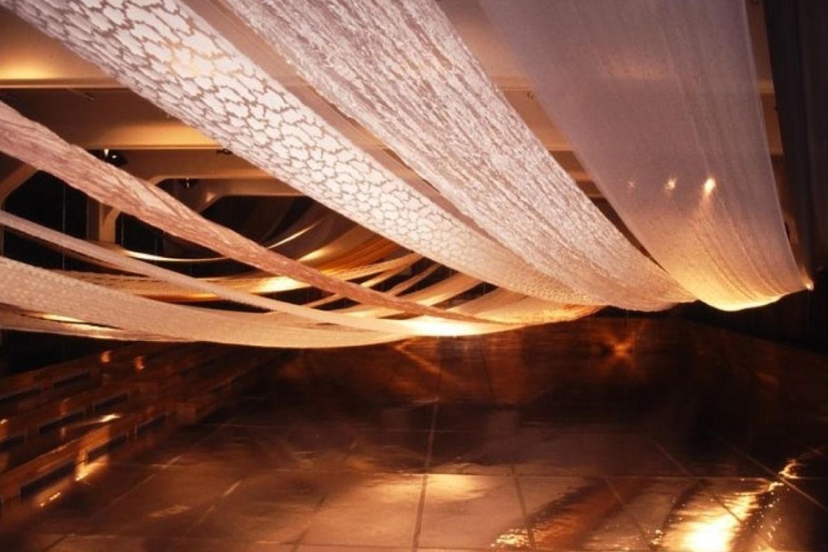 テキスタイルの製作過程を、4〜5層ほど垂らした薄いテキスタイルに映すわけですが、プロジェクション・マッピングのように音楽に合わせて次々と変化していく。テキスタイルがまるで空間の中を自在に動いていくような構成にしていただいて、どちらもとてもエキサイティングな空間になりました。