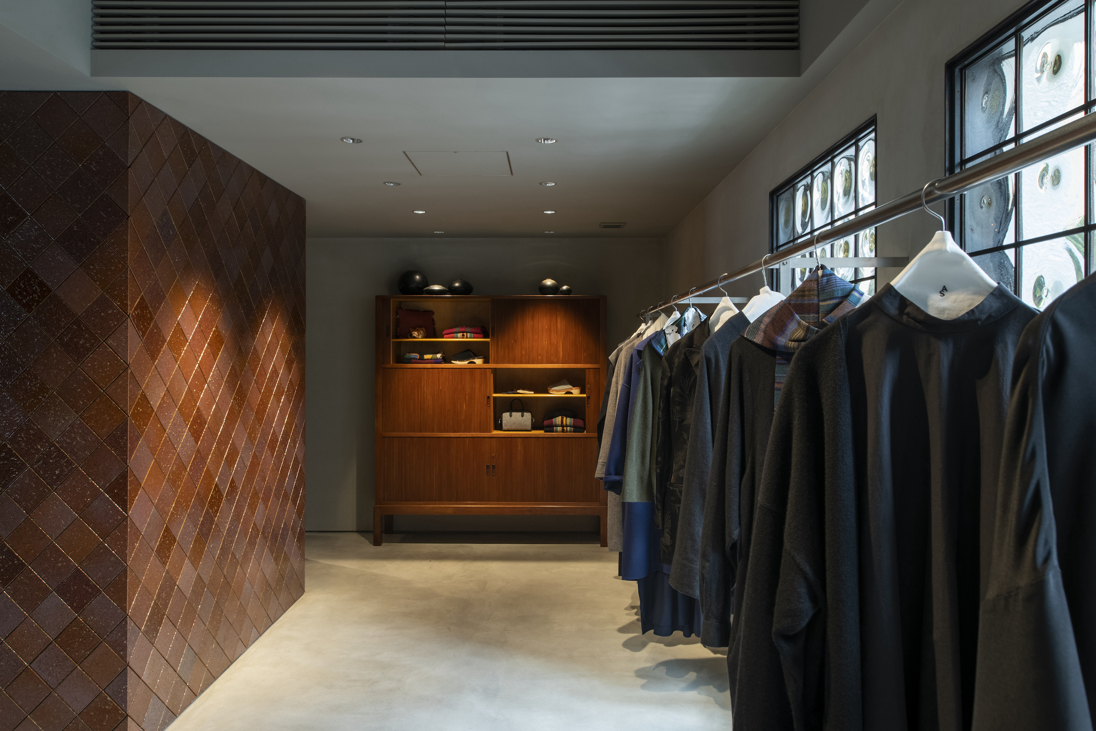 去年オープンした「アーツ&サイエンス福岡」は、福岡でセントラルパークのように親しまれている大濠公園のそばにあり、この公園には前川國男が設計して1979年に竣工した福岡市美術館が立っています。アーツ&サイエンス 福岡の壁面に赤茶色のタイルを使ったのは、このタイルを見ると福岡の人があの美術館をすぐ連想するからでした。その空気感を引っ張ってこれる要素を考えた時、あのタイルのイメージが浮かんだんです。施主も打ち合わせの中で、九州に初出店するアーツ&サイエンスが地場に根づいていくことを強く意識されていました。