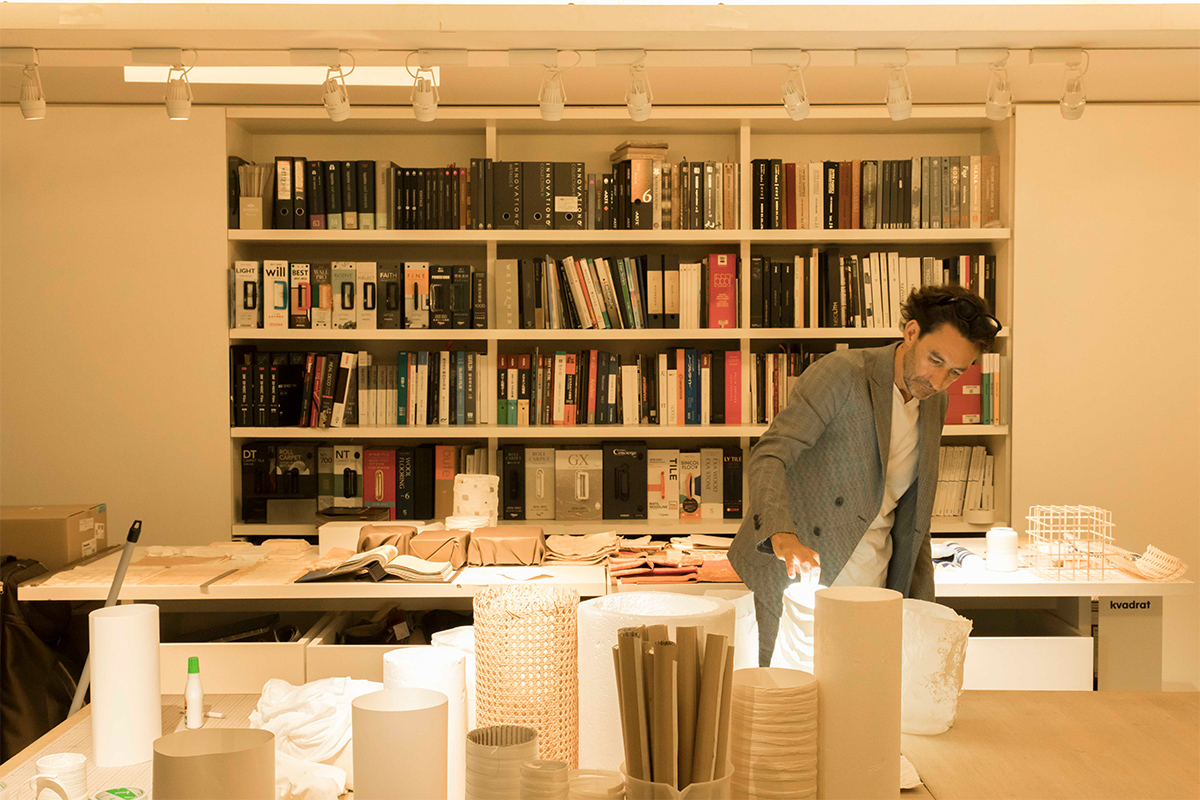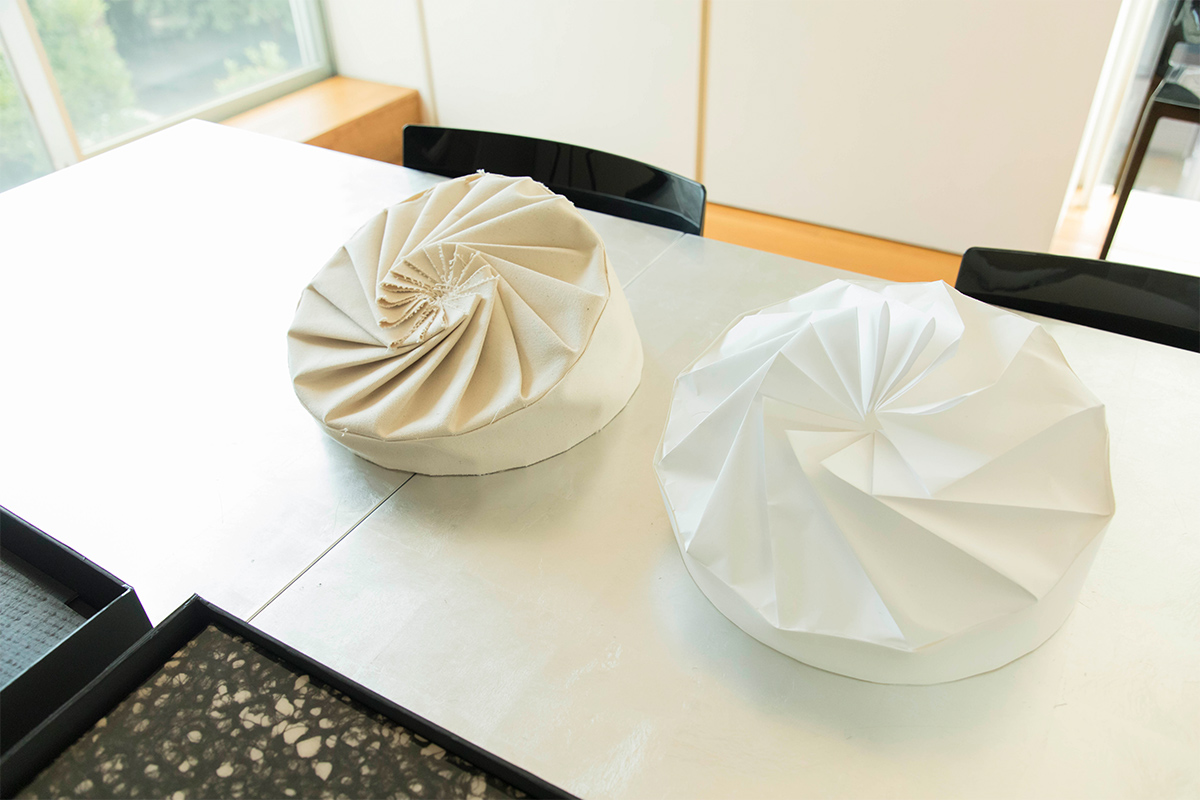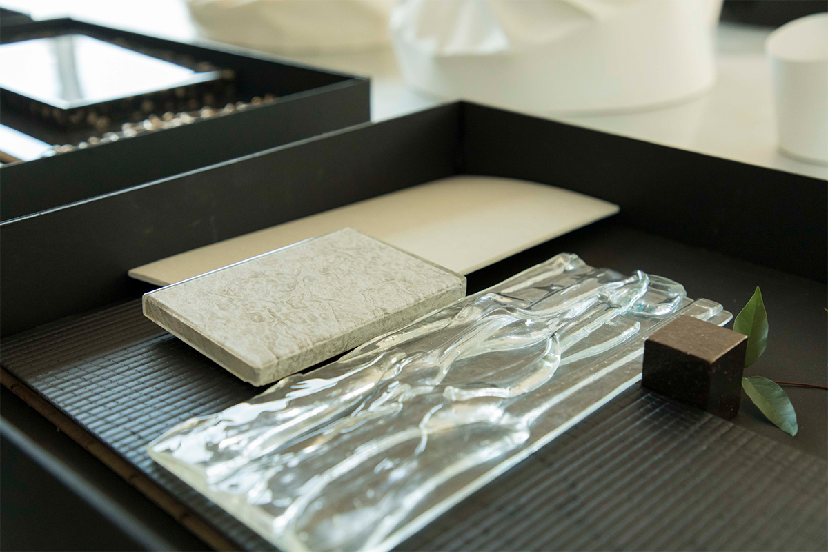 いいえ、いつも「実験」を繰り返していますよ。たとえば、いまはアトリエでTシャツを使ったランプシェードを試しています。和紙やガラスを加工した、床や壁に使いたいサンプルもあります。いろいろなアイデアを実際に作ることで、経験として積み重なりますし、発見があります。プロジェクトの話があったときに「あのアイデアを今回使えそうだ」とマッチングさせるのです。家具や素材だけでなく、アーティストの作品もよく見ますよ。ここにどんな絵を掛けたらいいだろう、どんな彫刻を置いたらいいだろうと考えたり、この壁にぴったりな作品を、あのアーティストに依頼しよう、といったアイデアにつながります。