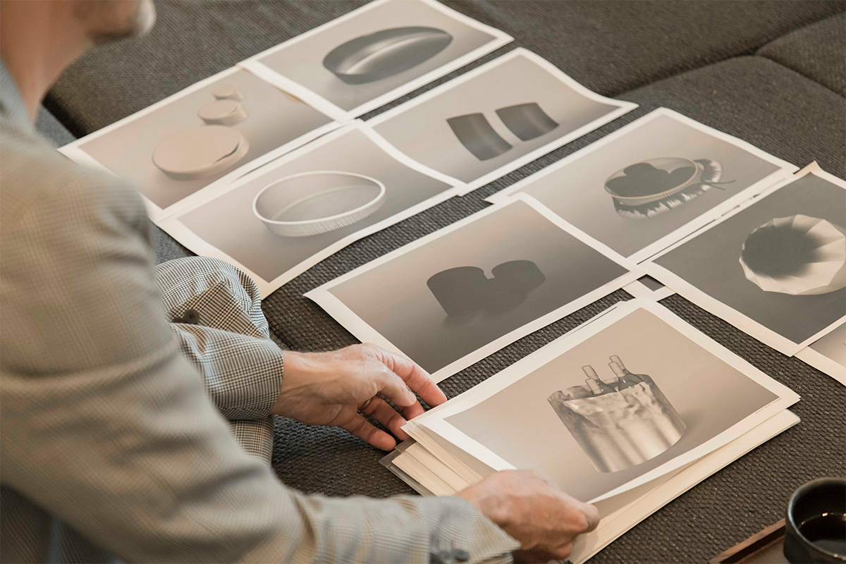 京都の老舗や職人の方々に声をかけて、茶筒や茶器を入れるカゴ、ふろしきを作っている最中です。どこも伝統あるブランドや職人の方なのですが、こちらからは「白と黒」「斜めにカットしたデザイン」とだけ伝え、その後はある程度お任せしています。自由なアイデア、優れた技術が合わさって、とてもいいものが出来そうですよ。