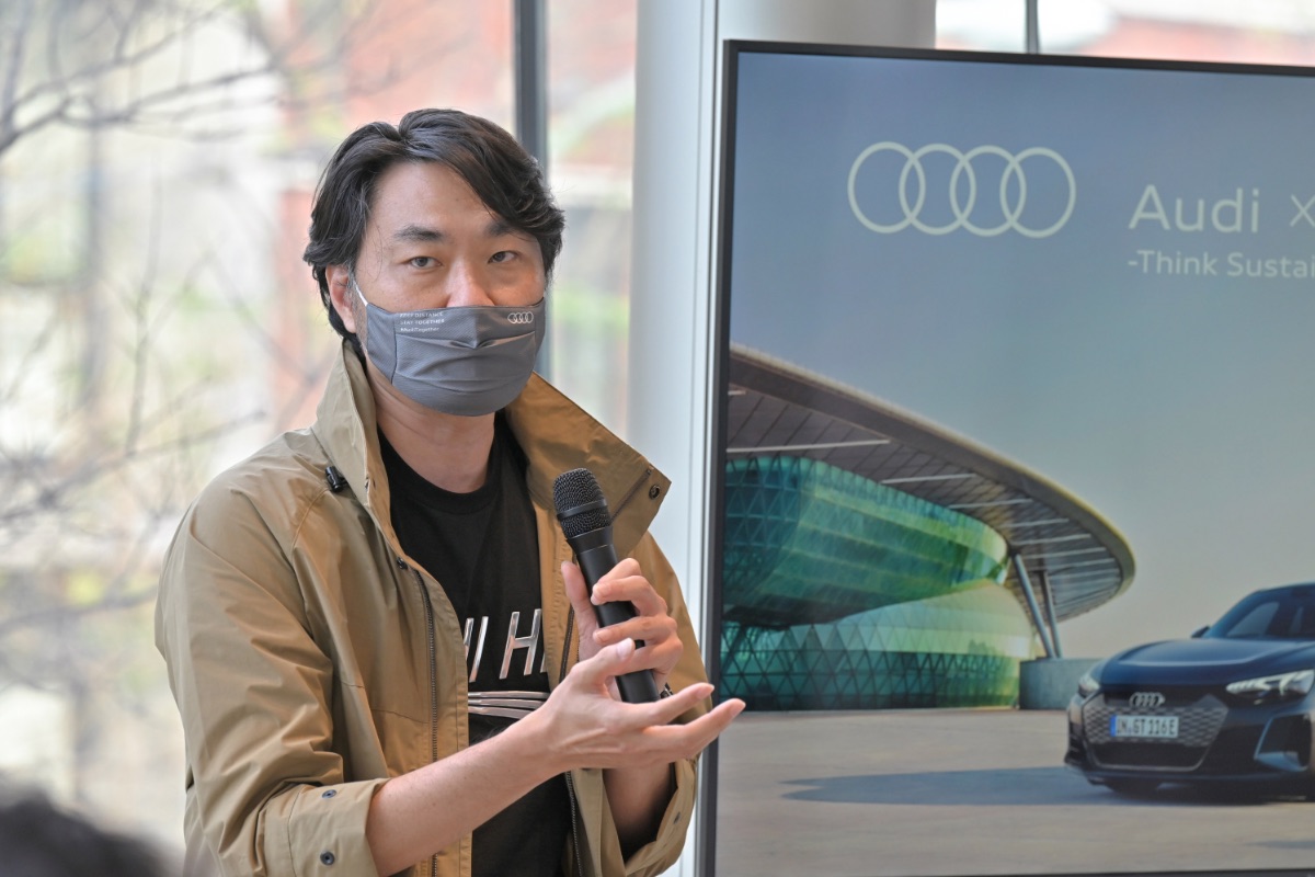 吉田さんはここで、この日の会場ともなった「Audi House of Progress Tokyo」にも展示されていた次世代のEV車「RS e-tron GT」について熱く語ってくれた。