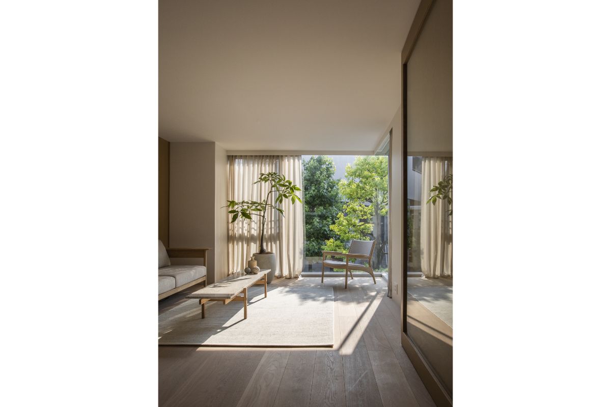上沼:ウッドヴィル麻布のその部屋はもともと自然光が入る時間帯でもやや暗い落ち着いた部屋なんですが、カーテンがその静寂さや重厚さをさらに増幅させている感じでした。