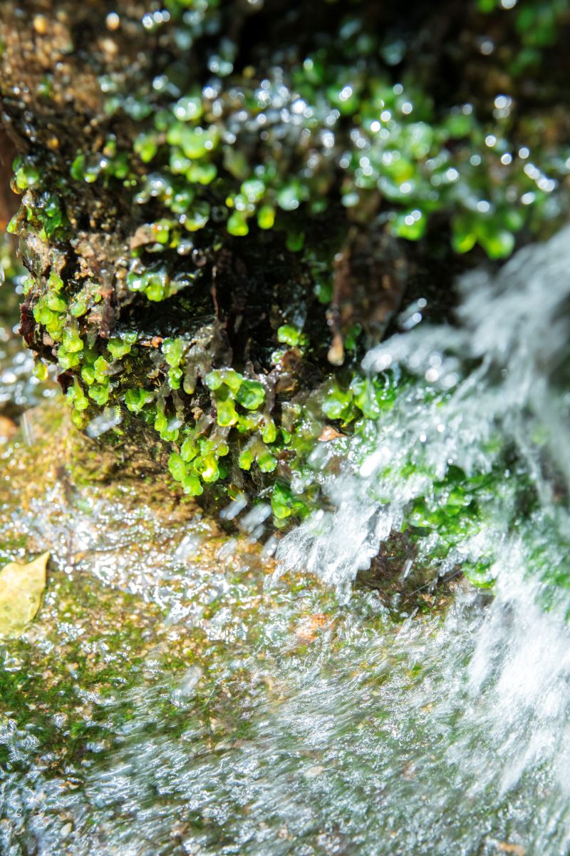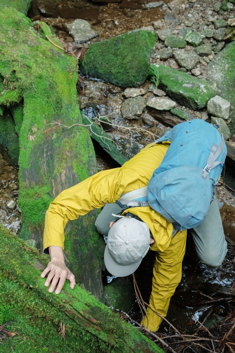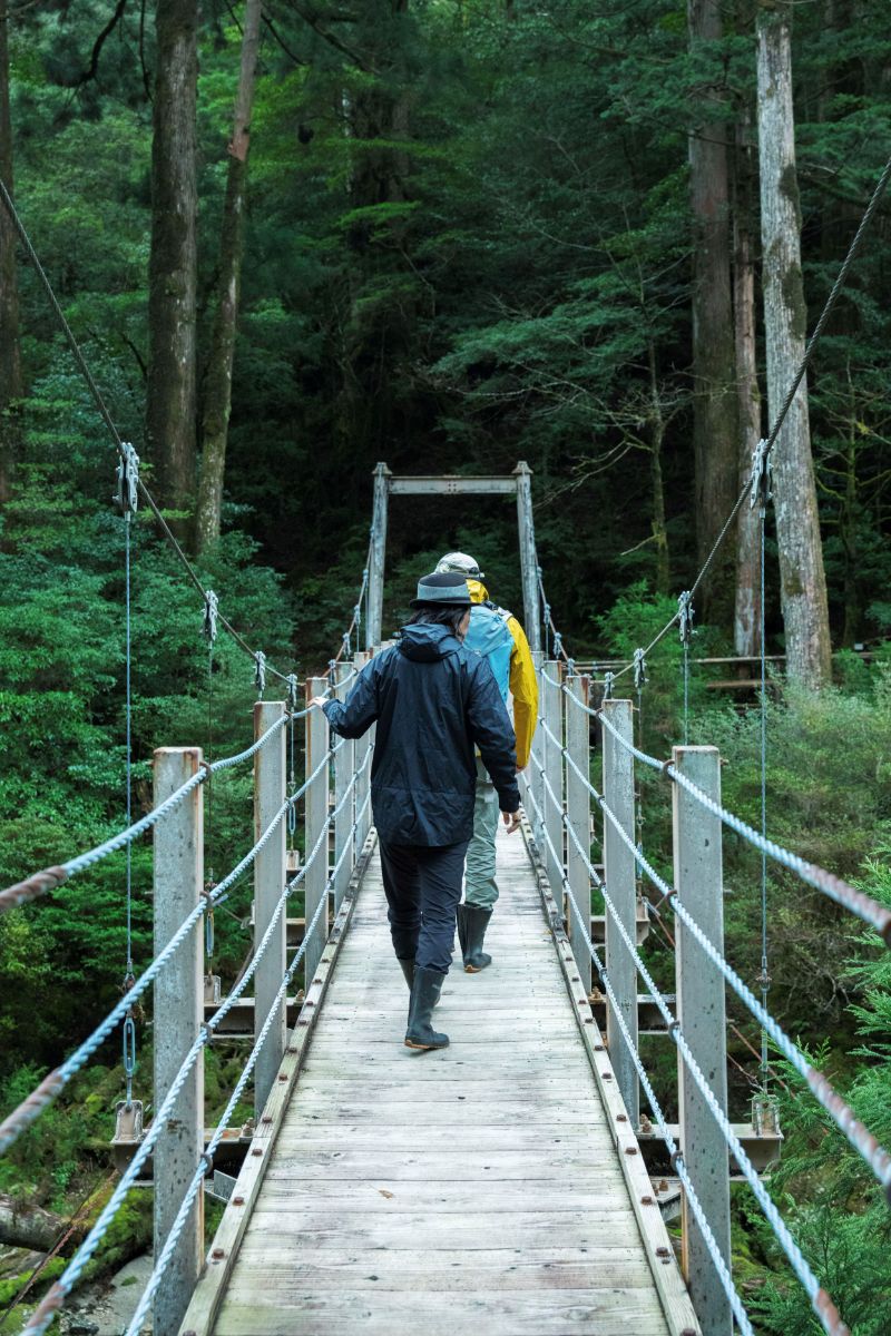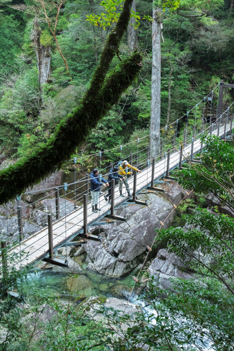 ヤクスギランドの整備された石道と木道は、天候が良い日であれば履き慣れた運動靴で安全に歩くことができる。この日は荒川橋からハイライトともいえる仏陀杉へショートカットする50分(1.2㎞)のコースを歩くことに。びっしりと苔に覆われた岩が森の入口で出迎えてくれる。昼なお暗い厳かな森の空気は、ひやりとして湿潤。常緑樹の照葉樹林の森から始まり、標高により徐々に北日本に似た森林へと移り変わる。