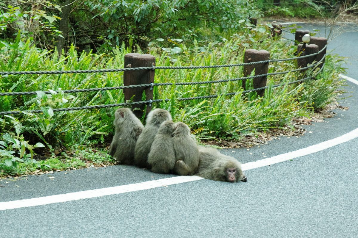 標高1000m~1300mにあるヤクスギランドは安房(あんぼう)川の支流である荒川の上流に位置し、5つの散策コースがある。ここでは紀元杉、仏陀杉、母子杉、小田杉などの屋久杉(樹齢1000年以上の杉)を見ることができる。Sumuから車を走らせること約30分で入口に到着。途中、シダの群生する道路脇に車を停め、昼ご飯用の箸になるシダの枝を手折る。もうしばらく進むと、車窓からヤクシマザルの群れが体を寄せ合う姿を目にする。