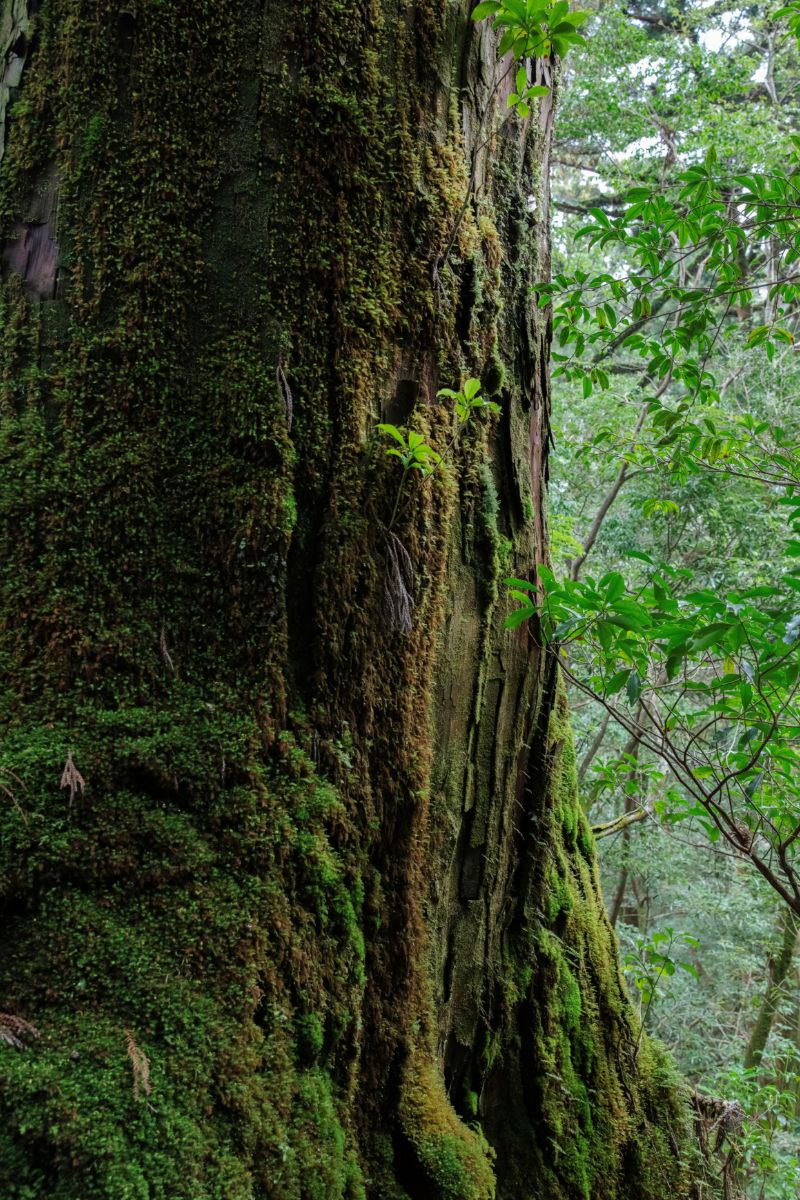 今村さんは語る。「土の少ない屋久島で植物が生きられるのは、苔の存在があるからです。苔は雑菌から植物の種を守る役割もありますし、雨や水蒸気により水を貯え、植物に水分を供給します。屋久杉は一般的なスギに比べて成長がとてもゆっくりな分、寿命も長く、年輪の幅が緻密なことから、木目が美しく内装材などの装飾に重宝されました。