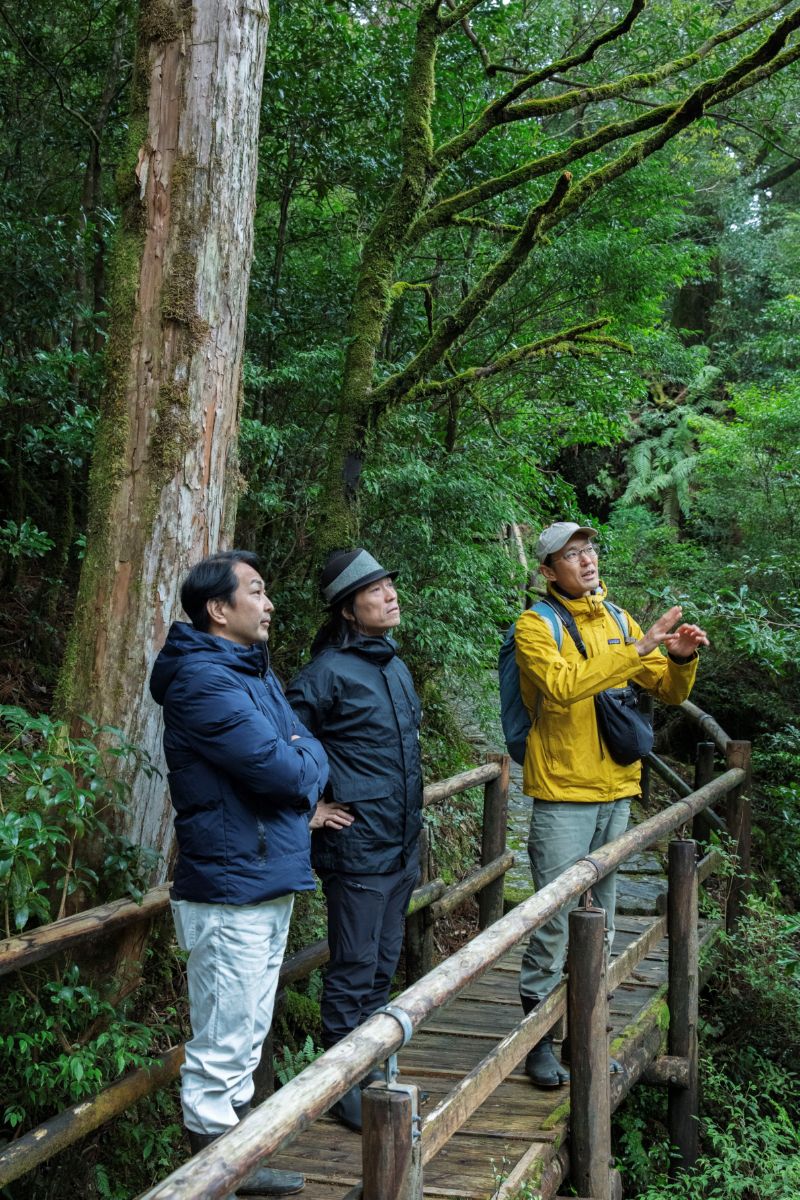 現在も縄文杉に代表される幹がうねった屋久杉の巨木がそのままに残っているのは、島民にとってそれらが畏怖の対象であったという説や、建材には向いていなかったという説など諸説ある。京都高山寺の石水院や島津家仙巌園の御殿にも屋久杉が使われ、今も美しい姿を留めているのは、当時の大工や職人が植生にも精通していたことが理由でもあるという。「むかしの人々は“木を買わず山を買え”と言ったそうです。それはその木が森の中で生きていた環境を知る必要があるから。建材にしたときも山に生えていた時と同じ方角で柱や梁にすると長持ちするとか、そういうことです」という今村さんの言葉に深く納得する。