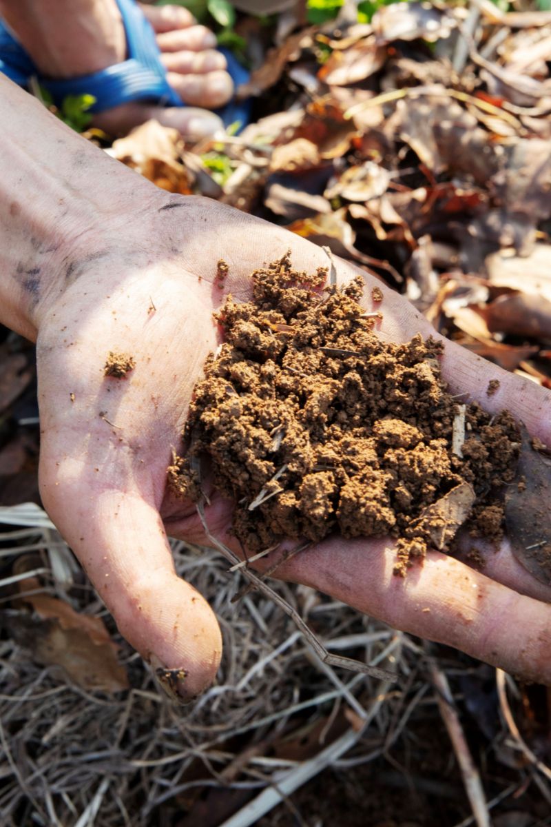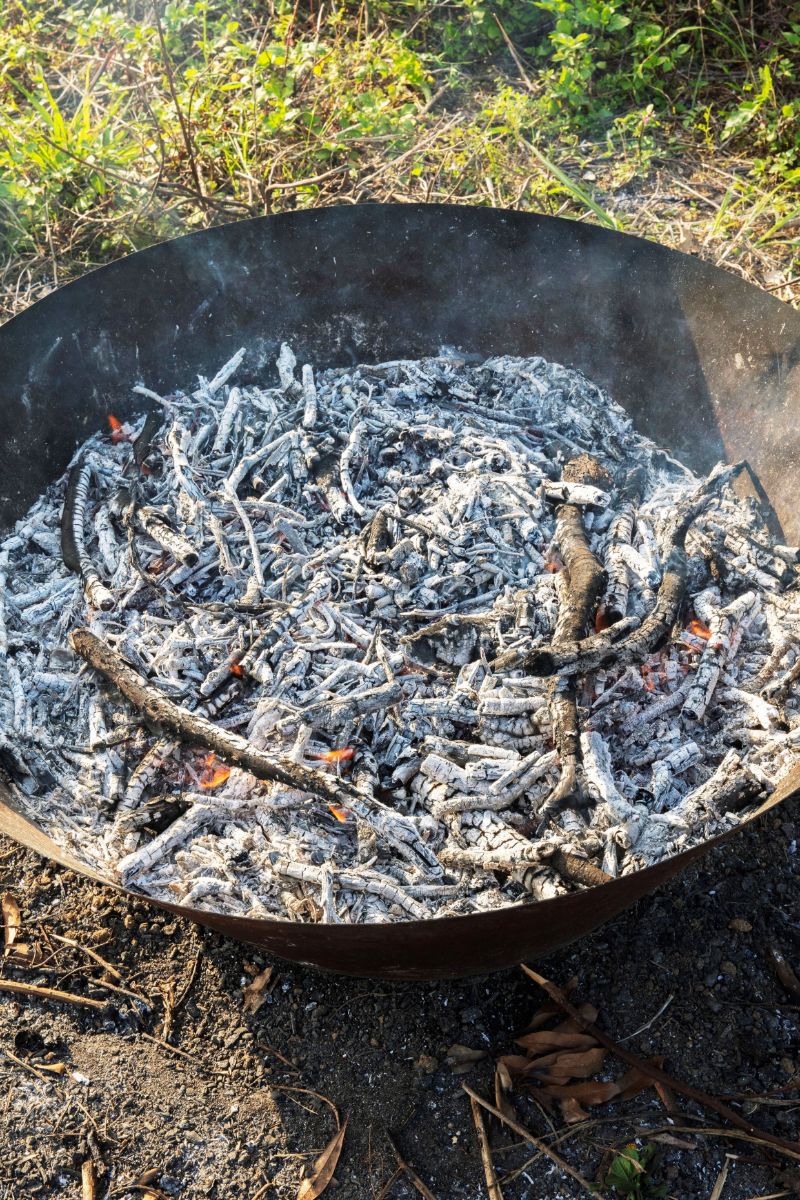 「木の幹や枝を燃やして炭にしたものを地中に埋めると、炭の空洞に菌類をはじめとする生物が住み着き、有機的な営みが生まれます。ほら、ここにミミズがいるでしょう」