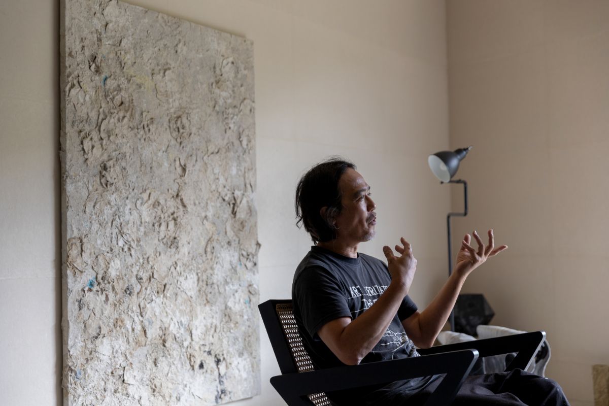 「ある抽象的な概念によって作品をつくることをメインにしているうちに、もっと作品の内側に入ったところからものを生み出したいと思うようになったんです。そのための出発点として、誰がつくったかわからないキャンバスではなく、和紙に描いてみたら、体験が全然違った。体が喜んでいる感じがしました」とハタノさんは話す。「この感覚を深掘りしていきたい」。彼はそう直感した。当時、手にした和紙は、京都府綾部市の伝統産業である黒谷和紙。最も強度のある和紙を求めて出会ったものだった。