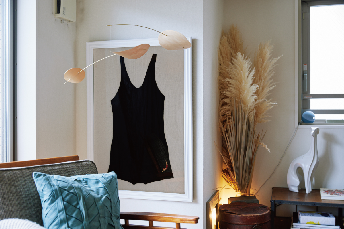 「想像していたことをはるかに超えるようなご提案で、期待通りアートとの新たな出会いが楽しめました。あ、こんなアートの楽しみ方があるんだと気づかせもらえた。特に水着は、最初は少し違和感がありましたが、インテリアの雰囲気に合っていたので少しずつ馴染んできて、自分自身の知らなかった感性が開くような感じがありました。主人はこの水着のディスプレイをとても気に入っていました」
