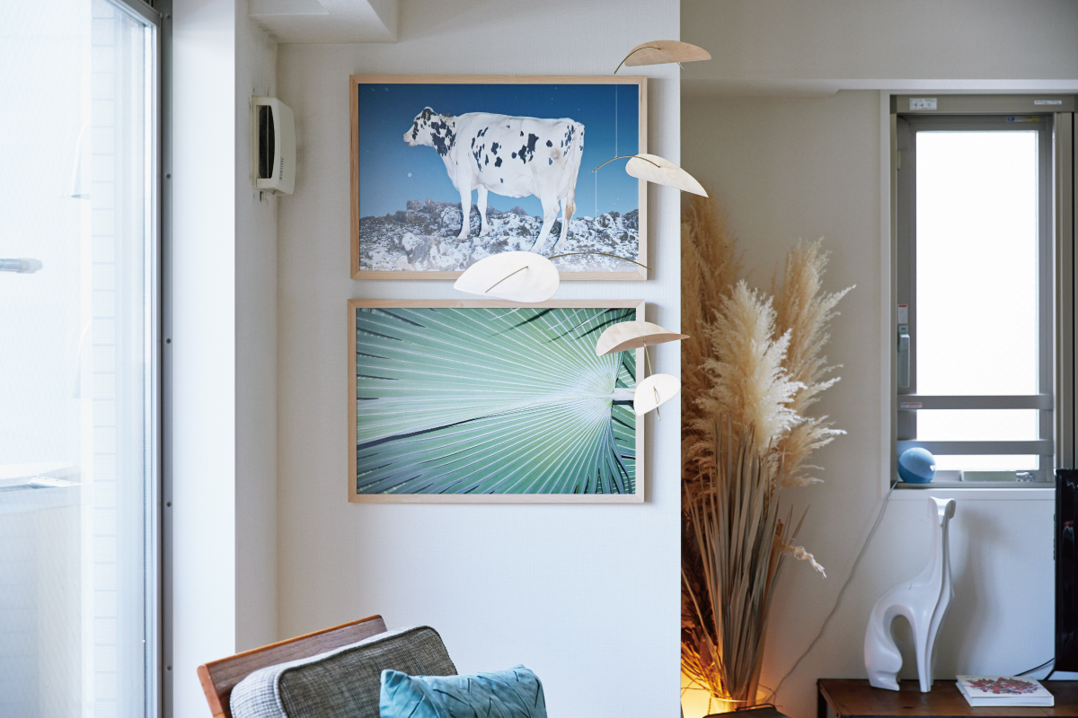 そして、リビング&ダイニングには遠藤文香氏による写真作品が選ばれました。それぞれ牛と葉をモチーフにした2点を、上下に並べて飾っています。