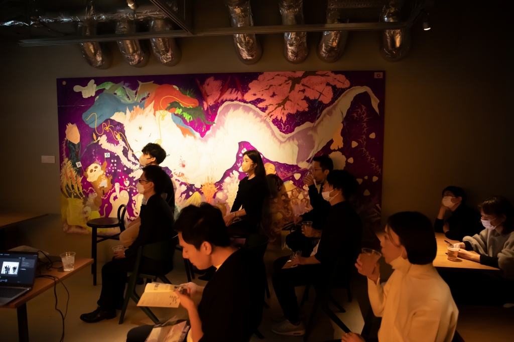 会も終盤。お酒も入り、普段見ているアート作品や作家さんの話題で盛り上がります。