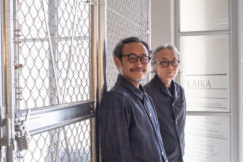 ストレージ前で、ホテルKAIKA東京やアートストレージの成り立ち、特徴について説明を聞きました。