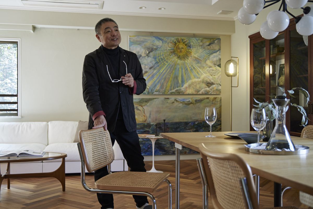「こういう組み合わせ方はちょっとマニアックで、分かりやすいコーディネートではないかもしれません。ここで僕たちが表現したかったのは、家具が住み手の価値観を表すものになるということ。メンテナンスをして味わいが増す家具を楽しむというのもひとつの価値観だし、自分なりの価値観を持ってこだわって選ぶことが大切だと思っています」