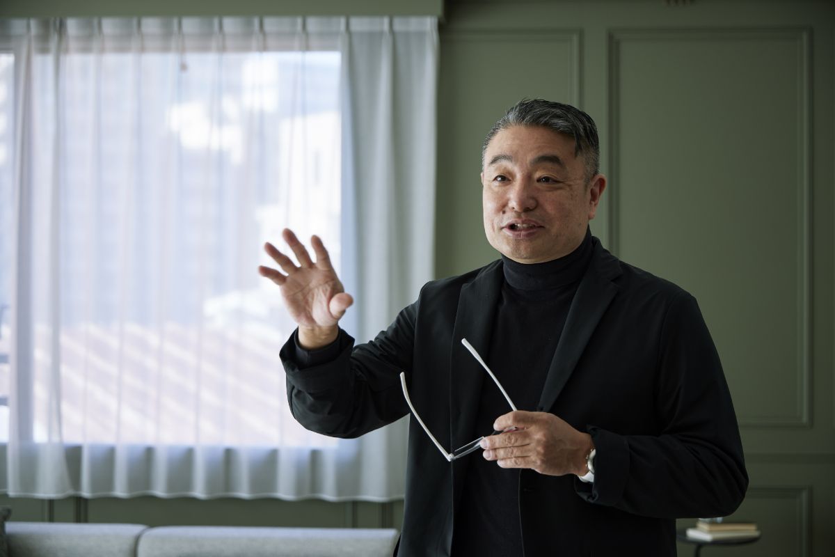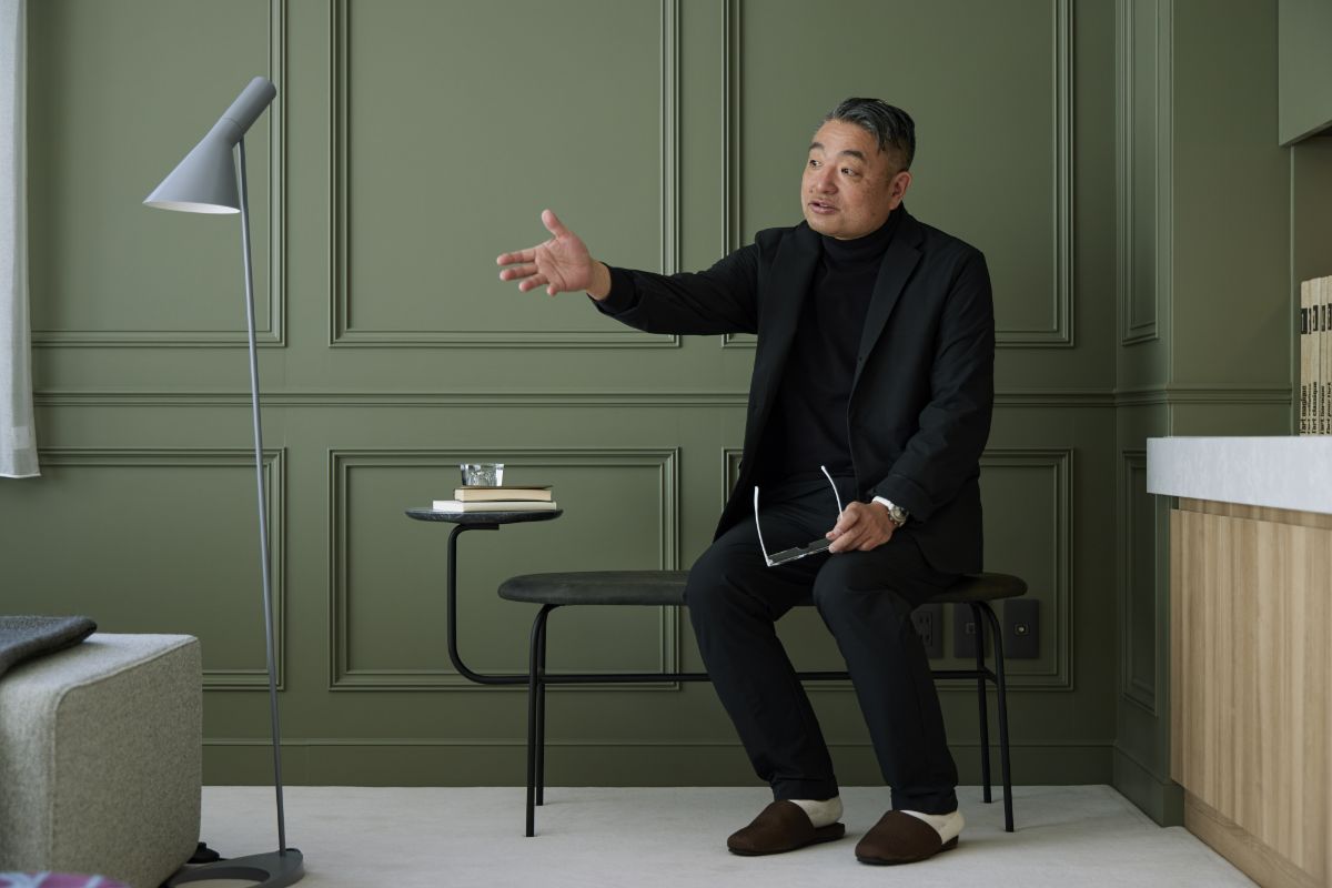 「古き良きものをアップデートしながら後世に引き継ぐという考え方は、ヨーロッパで暮らした経験などがあって自分なりの価値観をきちんともつ人に合う。ある程度の経験を重ねてライフスタイルは安定しているけれど、まだまだエネルギッシュでポテンシャルが高い夫婦。そんな人たちが東京で暮らすことを考えると、新築のタワーマンションではなく、もう少し地に足がついたヴィンテージマンションでしょう。そして、固定観念に捉われることなく、自分たちのこだわりをもってコーディネートを楽しむのでは……とイメージを膨らませました」