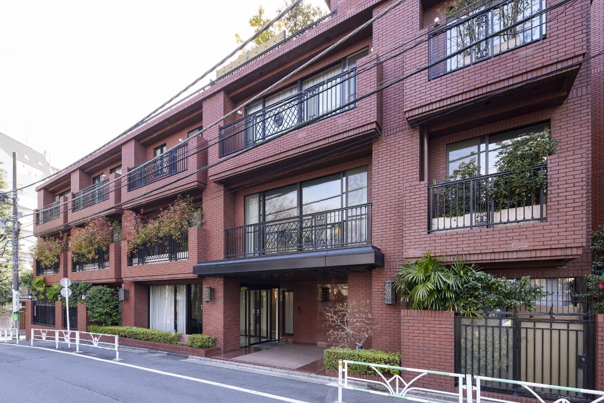 東京・広尾にあるそのマンションは、バブル絶頂期といわれる1990年に建てられた5階建ての低層マンション。都心の一等地で展開する当時の高級分譲マンションシリーズのひとつであり、レンガを思わせるタイル貼りの重厚感ある外観や、クラシカルな壁紙にブラケットライトを合わせた共有部の設えに、華やかな時代の名残を感じさせる。そこにゆったりと配された全11戸のうちの一戸、南東側のコーナーに位置する約150㎡の部屋を、R100 tokyoが生まれ変わらせた。