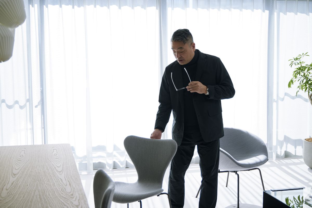 「先ほどのグレーのグラデーションを描いたというのも、見た目が全部同じだとつまらないという考えもありますが、それぞれに張り地を変えることで肌触りを変えたいという思いもあるんです。わずかな違いかもしれませんが、心持ちは大きく違う。いろんな体験ができると今日はどこに座ろうかなという楽しみになるし、空間はより豊かになると思うんです」