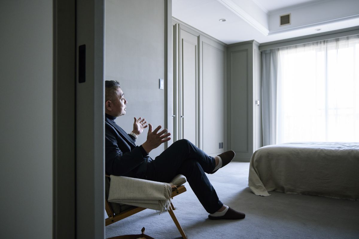 「サウナ上がりに腰掛けて、外を眺めながらくつろぐイメージです。窓とは離れた位置になるのですが、陰影が美しいインテリアを手前に感じながら見る外の景色も、またいいもの。部屋自体も景色として楽しめるんです。逆光でハレーションを起こしてコントラストが出るのも、僕は面白いと思っています」