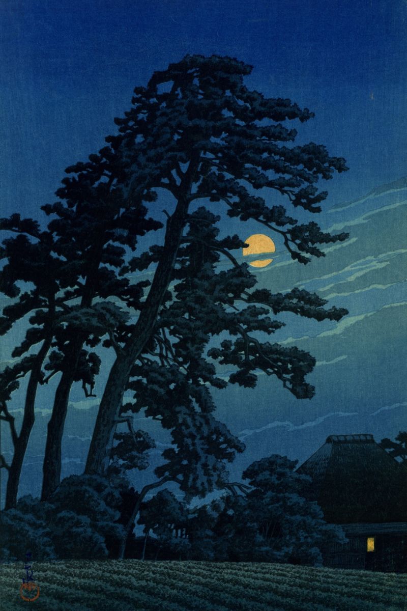 川瀬巴水の『馬込の月』に描かれた「三本松」