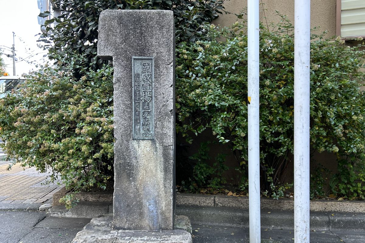 三田の慶應義塾大学に通っていた1970年代の後半、渋谷から田町方面へ行く都バスをたまに使うことがあったのだが、恵比寿三丁目の交差点の所で首都高をくぐってここの商店街に差しかかると、その当時からしてひと昔前の裏町になってきたような不思議な気分になったのを思い出す。昭和も戦前築と思しき木造2階建の商店のいくつかは、90年代くらいからレトロセンスのバーやカフェに変わったが、「ハチロー」という洋食屋は随分前からそのまま、という感じだし、「三越湯」という銭湯は建物こそ改築されたが、門前に〈国威宣揚 三光協和会 昭和十二年十一月三日〉などと刻んだ札を貼った国旗掲揚台が残されている。
