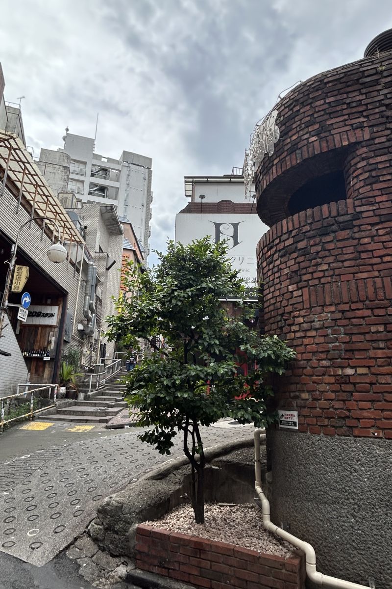 この辺は公園通りがトレンドだった学生の頃から、たまに遠征してきた。とくに、麗郷の前から真横に上がっていく石段道は思い出深い。風俗店の看板が目に入る裏ぶれた石段坂だが、『メイド・イン・USAカタログ』という『ポパイ』の前身誌が出てアメカジ的なファッションがハヤリ始めた大学1年生の頃、リーバイスのジーパンやコンバースのスニーカー……などのアメリカ輸入衣料を売る「ミウラ&サンズ」(シップスの前身)という店が、石段坂の左側にできたのだ。ここで緑色のコンバース(チャック・テイラー)のローカットのやつをゲットしたことはいまでも鮮やかに記憶しているが、当時僕は8ミリ映画を作ったりするサークルに入っていて、自ら監督・出演もした映画のロケでこの石段坂を使った。カメラマンの指示に従って、T字になった坂上の右手のほうから出てきて石段を何度も下り上りしたことを昨日の出来事のように思い出す。