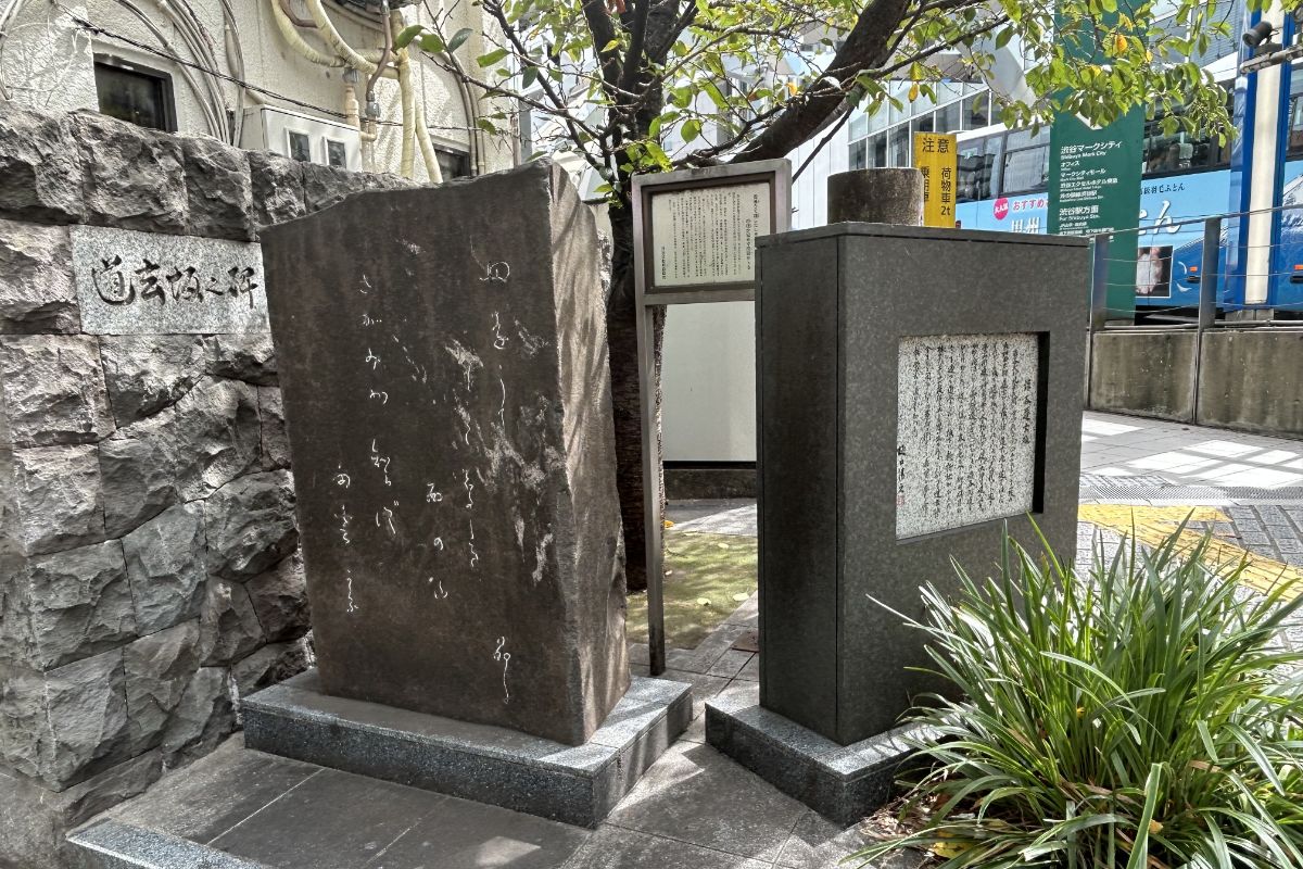 五、六差路のような辻のマークシティのほうから来るプロムナードの脇に、与謝野晶子の歌碑とともに道玄坂の由来碑が置かれている。ここに大和田道玄という人物にまつわる一説(山賊として旅人から金品を奪った)が記されているが、この人の行状はともかくとして、大和田の姓のほうもかつては南方の桜丘のほうまで広がる町名に採用されていた。