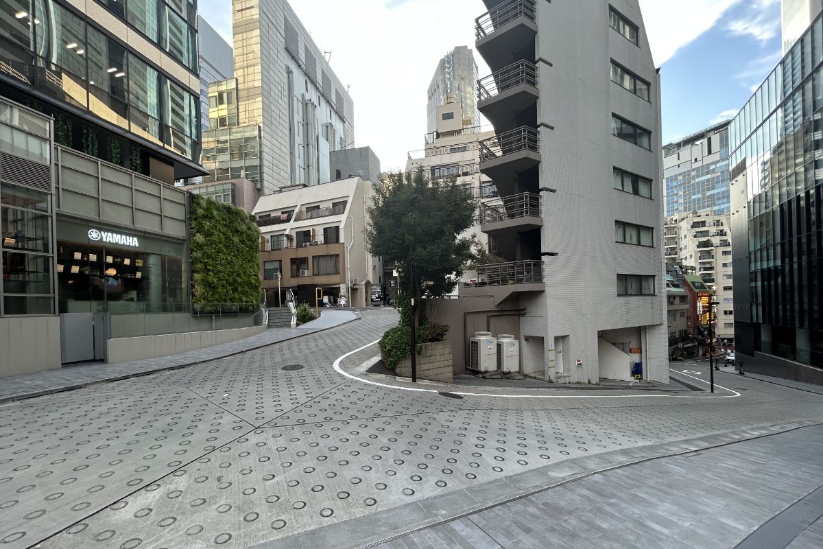 インフォスタワーの前をさらに東奥へ進むと、ヤマハが入ったビル(ここも「渋谷サクラテラス」の一棟のようだ)の前にクネッとV字に曲折した急坂がある。かつて、このヤマハの一角に「エピキュラス」というライブや演劇をやる小劇場があって、70年代の終わり頃、東京ヴォードビルショーの公演などをよく観にきたものだ。崖になっていた線路側の一帯の景色はガラリと変わってしまったが、急カーブの坂道はそのまま残っていて、懐かしさがこみあげてきた。