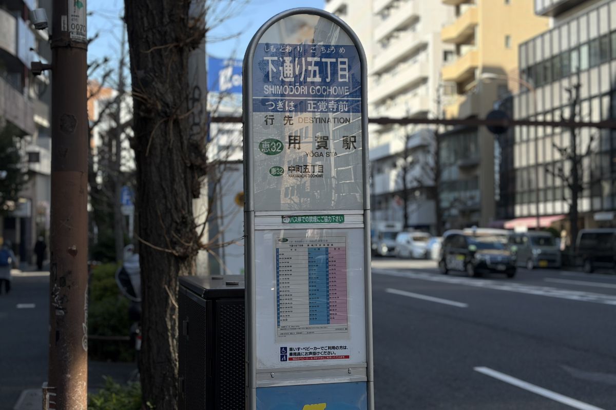 「コルシカ」の前あたりに、「下通り五丁目」という東急バスの停留所が立っているけれど、下通りというのは昭和40年代初め頃まで駒沢通り沿いの帯状の領域に付いていた町名なのだ。こういう古町の名前が時折残されていたりするのがバス停のおもしろいところ。