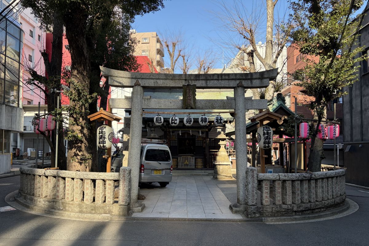 いまでいう“背脂ショウユ”あるいは“背脂チャチャ”系の名店・香月があったビルの先の路地を左折すると、前方に恵比寿神社というのがある。道の中央に神社があって、その島を囲むように路地が配置されているのが地理的におもしろい。この社が恵比寿の源と思う人もいるかもしれないけれど、恵比寿の由来は現サッポロビールのエビスビールの銘柄からであり、この神社はそれにあやかって昭和30年代頃には改称、それ以前は天津神社といったそうだ。