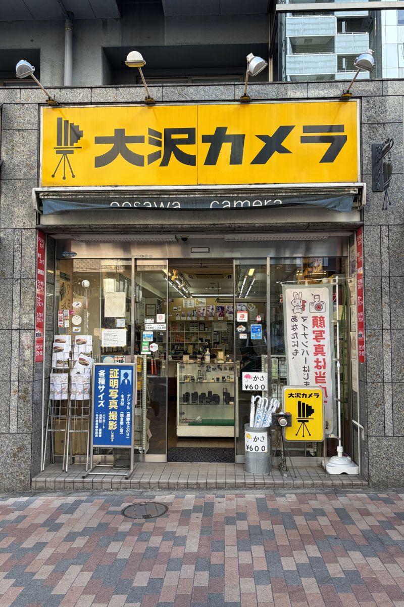 駒沢通りにもどると、道の南側のアーケードの区間には、僕が鎗ヶ崎にいた頃までは割合と古い店が残っていた。漢方薬をずらりと並べて、その奥に白衣姿の薬学博士みたいなオジサンがいた「岩崎薬局」は店をやめてしまったようだが、黄色い看板を出した「大沢カメラ」はいまも健在だ。顔見知りの御主人の姿が見えたので、ちょっと覗いてみよう。