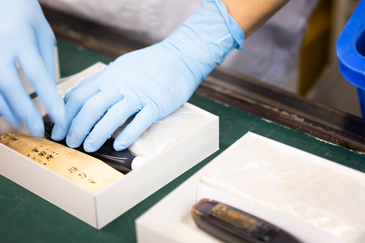 くず餅の消費期限はたった2日。450日かけて発酵させたものが2日の命というのは、江戸の菓子らしく「粋」ともいえるだろう。防腐剤を入れたり真空パックに詰めたりして日持ちを延ばせば売り上げ増にもつながるが、船橋屋で大切にしているのが「受け継いできたものを守ること」。材料は天然素材にこだわり、人の手で紙箱に詰め、自分たちの目の届く範囲でくず餅をつくり続けている。高度経済成長期に一気に増えた店舗も、現在は目が行き届く25店舗にとどめた。どんな時代でも、ただまっすぐにくず餅の磨き込みを重ねてきた船橋屋。いつも根底にあるのは「おいしいくず餅をつくり続ければ、お客さまはおのずとついてくる」という考え方だ。