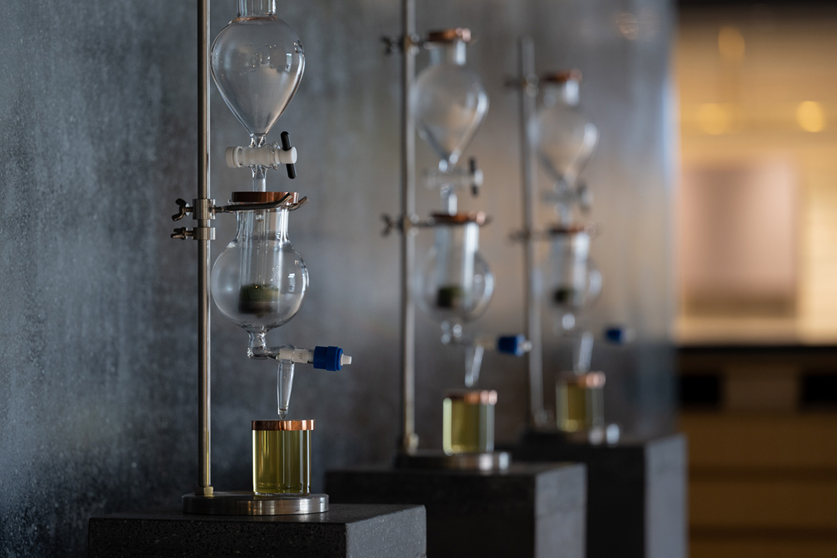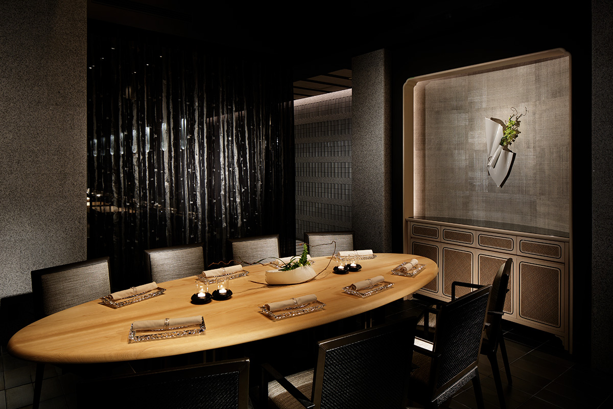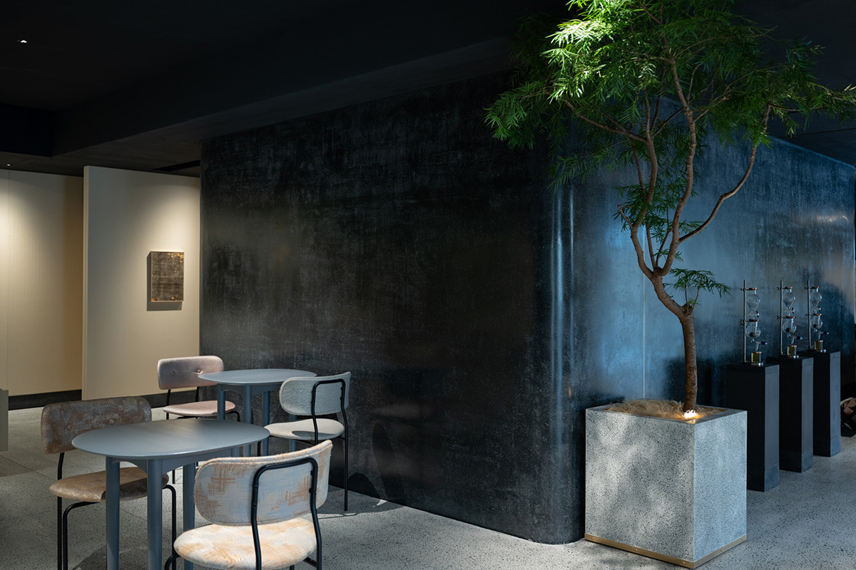 また素材には、経年によって風合いが変わるものと変わらないものが対比するように用いられ、伝統と革新という細尾の思想が見事に息づく。