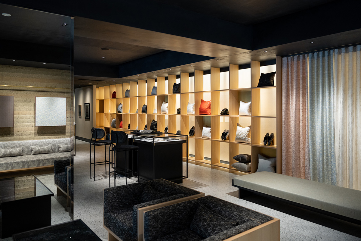 地上5階建ての建物内には、テキスタイルコレクションに加え、家具や小物などのホームコレクションを手に取ることができるストアのほか、ラウンジやギャラリーも併設され、西陣織の魅力を余すところなく体験できる空間となっている。