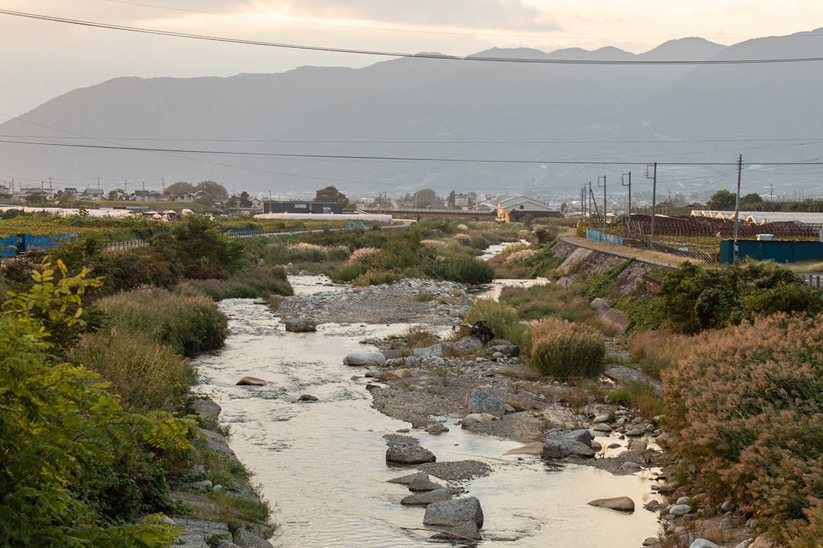「このあたりは日川に沿って『笹子おろし』という冷たい風が吹くのですが、この風がないと、ブドウに香りが出ません。風のおかげで、夜には十分に気温が下がり、昼夜の寒暖差が大きくなる。この寒暖差がワインにしたときの香りと果実味に繋がるんです」(松坂さん)