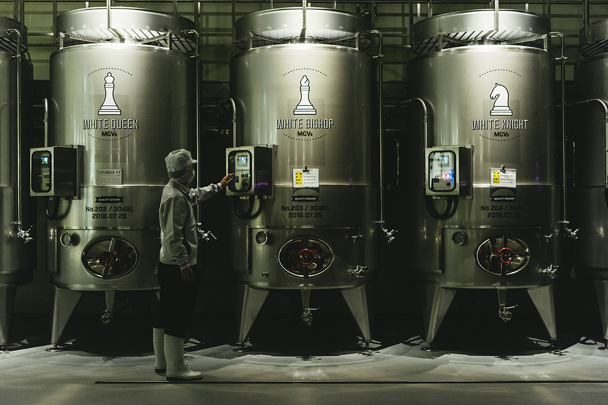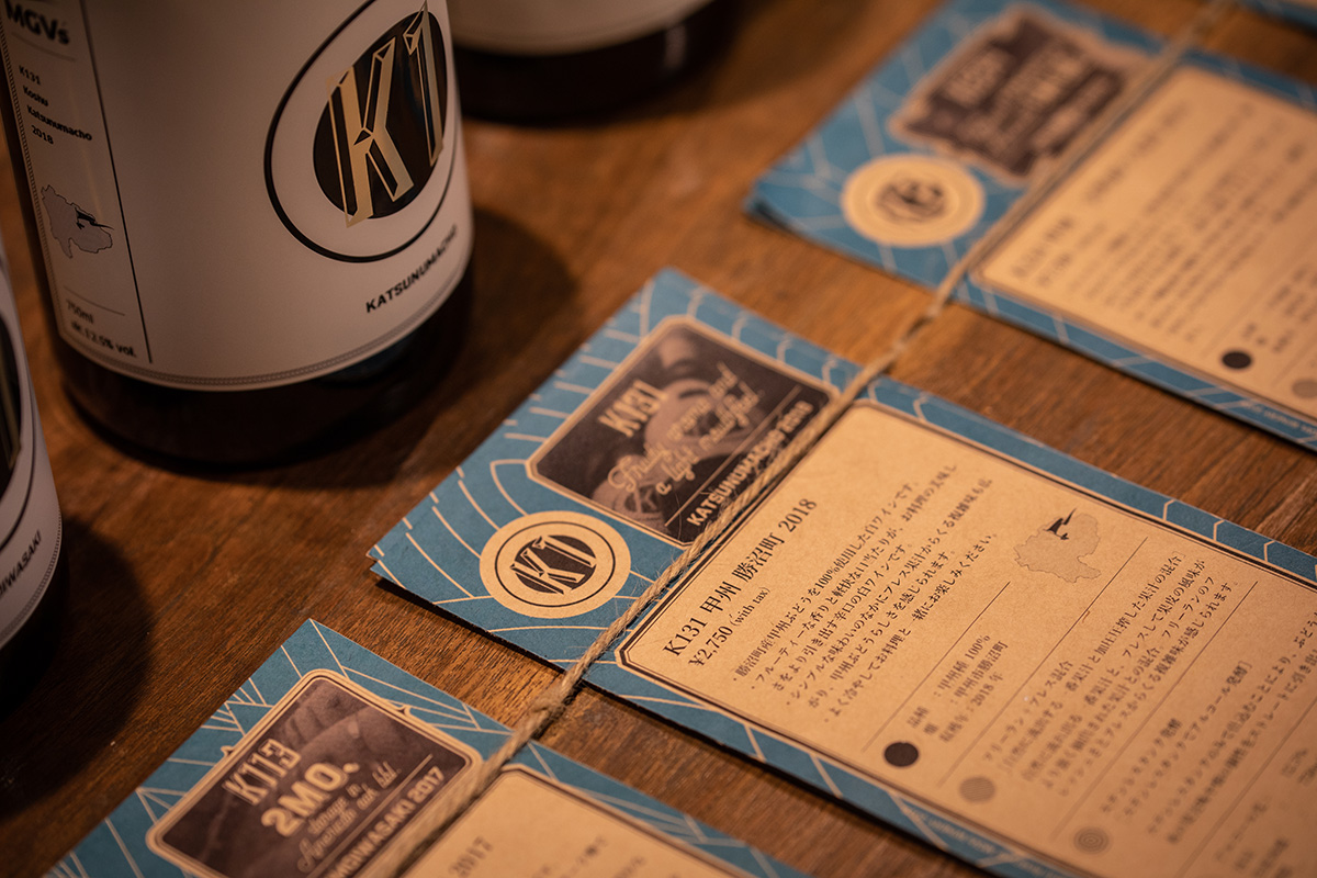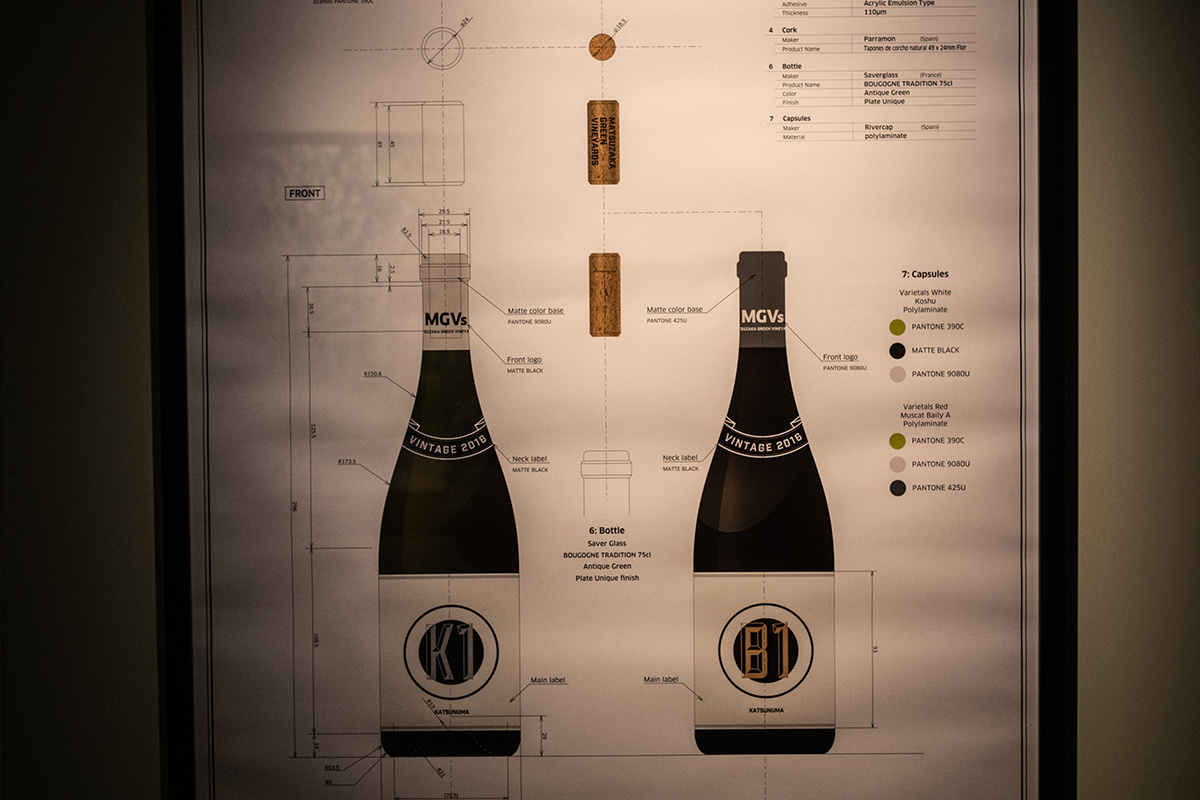 「MGVsワイナリー」ではワインをアルファベットと3桁の数字の組み合わせで表記しているのだが、これも田子さんの発案によるもの。物事を体系立ててロジカルに考えることが得意な半導体製造メーカーとしてのキャラクターをワイナリーのブランディングに反映させたという。アルファベットがKなら甲州、Bならマスカット・ベーリーA。1桁目の数字はブドウの収穫地を、2桁目は仕込みの方法を、3桁目は製造方法をそれぞれ表している。
