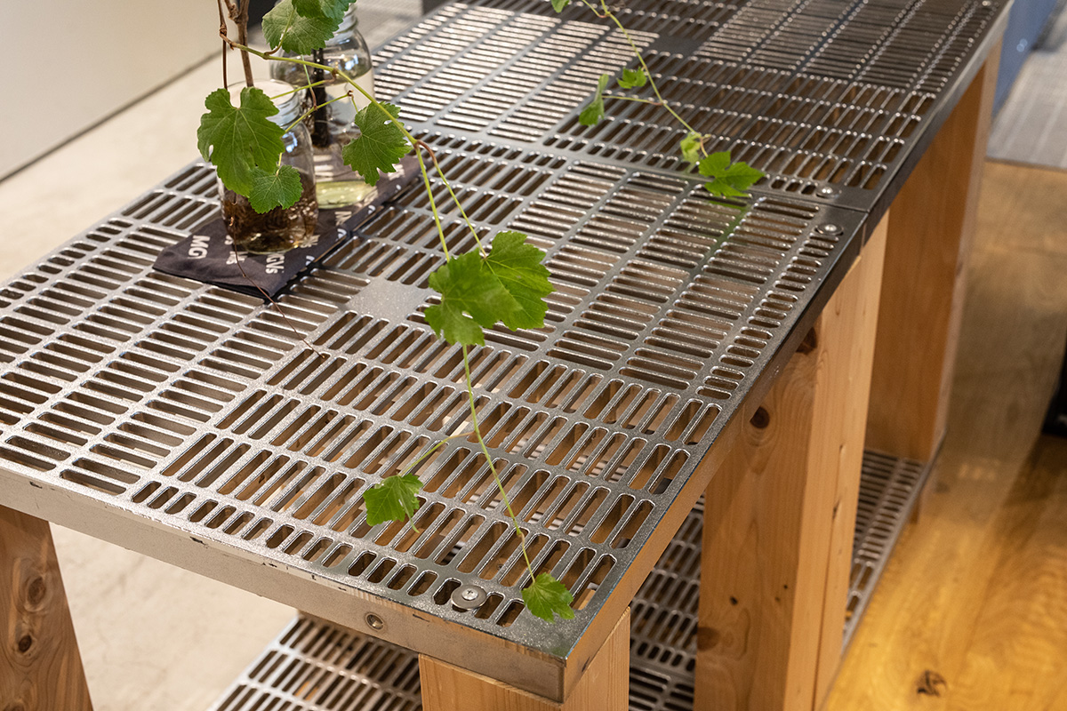 それもそのはず、醸造施設やセラーなどは半導体工場時代のクリーンルーム(外気中の不純物を取り除く空気清浄システム)をそのまま活用しているという。配管やバルブ、グレーチングといった什器類もインテリアとして再利用。半導体づくりに使用していた窒素タンクも、そのままワインの鮮度保持(酸化防止)に役立てているそうだ。