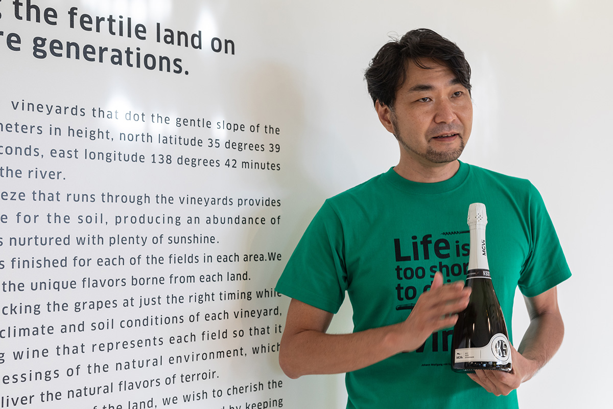 実は松坂さん自身、勝沼町のすぐ隣にある笛吹市一宮町生まれ。明治時代から続くブドウ農家の4代目であり、自らプライベートワインを委託醸造するほどのワイン好きでもある。「この土地でしか表現できないものをつくりたい。そしてそれを次の世代へと引き継ぎたい」。そんな思いから、松坂さんは半導体事業のうち勝沼の工場の事業は海外へと移し、生まれ育ったこの地でワインづくりをスタートさせた。