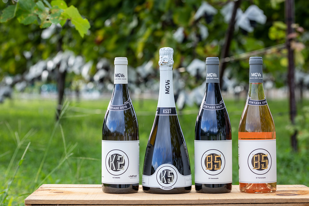「MGVsワイナリー」では周辺にいくつものブドウ畑を所有しているが、いずれの畑も川のそばにあり、畑の中を涼風が吹き抜けるそうだ。また、栽培するブドウ品種は、基本的に白ワイン用の「甲州」と赤ワイン用の「マスカット・ベーリーA」の2種類のみ。ともに世界的にはマイナーなブドウ品種だが、古くから勝沼周辺で栽培されてきた品種であり、勝沼というテロワールを余すところなく表現するには「この2種類のブドウしかない」という。