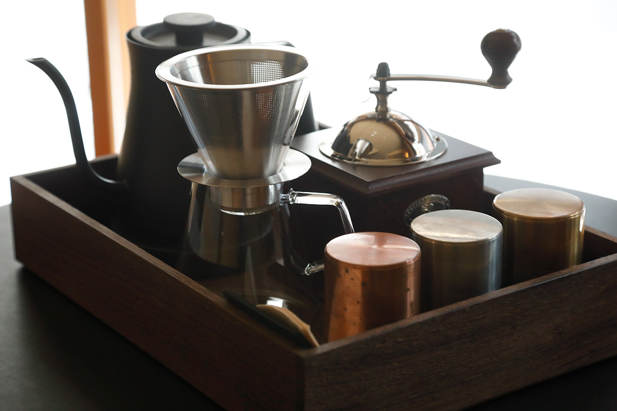 「コーヒーや日本茶が入った茶筒は、創業明治8年(1875年)の開化堂さんの作品です。使うほどに味わいは増すけれど、精度は変わらない。押し込まなくてもすっと落ちる蓋は、有名ですよね。実際にお使いになると、レベルの高さを感じていただけます」(田中さん)