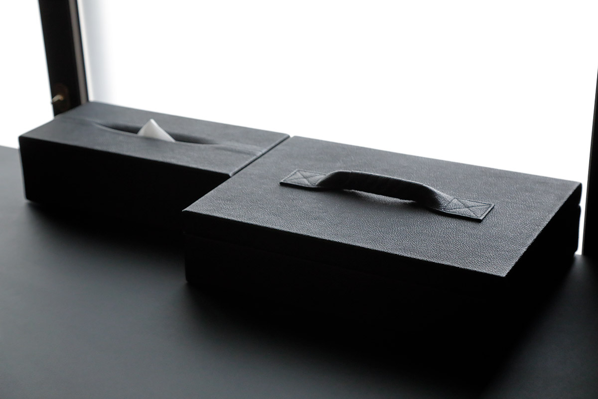 ほかにもレザー製の強度あるティッシュケースなど至るところにこだわりがあって、それも愉しみ。