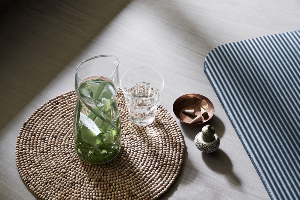 お気に入りのハーブを入れた水を用意して、窓に向かって深呼吸。体が少しずつ目を覚まし、じわじわと温かくなってくる。