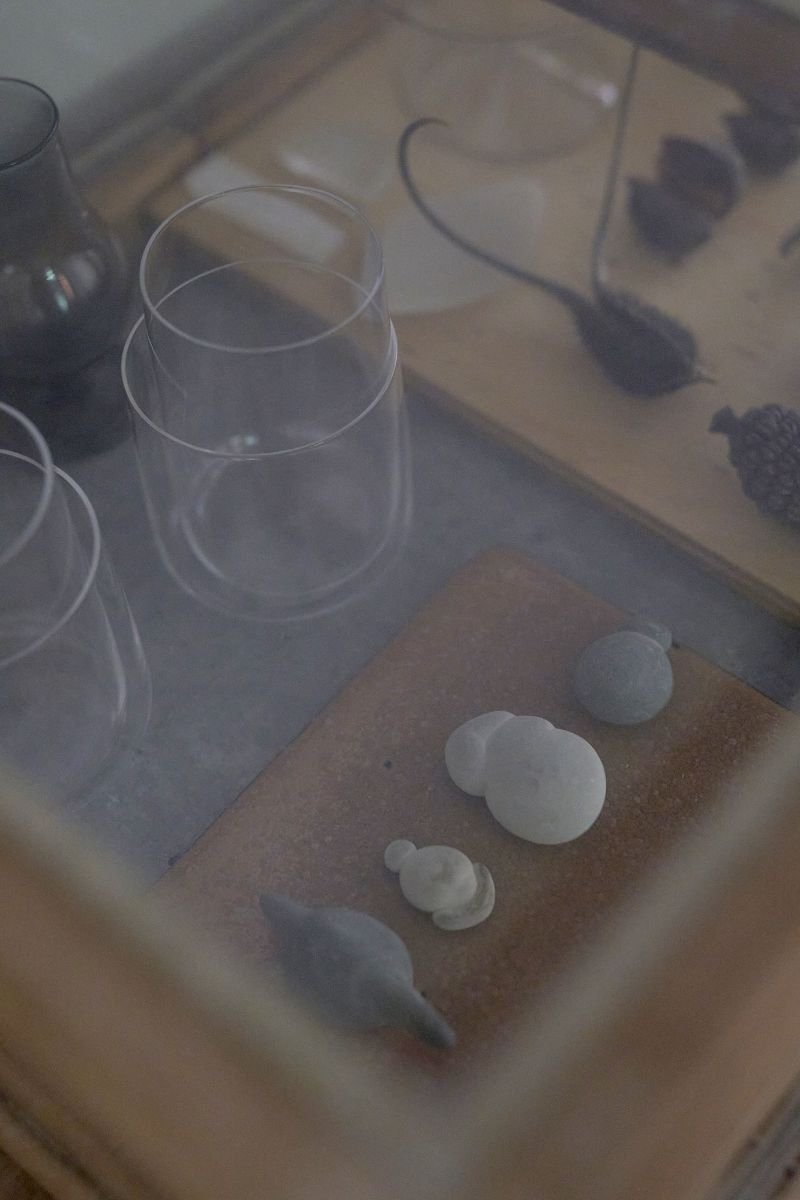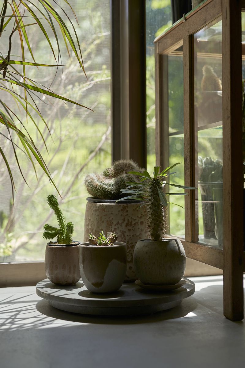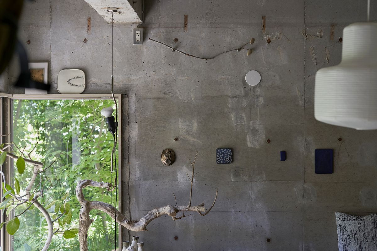 「家にあるものは、失敗して商品にならなかったものや試作したものが多いですね」と鈴木さん。住まいの至る所に置かれた有機的なフォルムの陶芸作品は、インテリアと建築、そして外部の豊かな自然とのブリッジ役になっている。