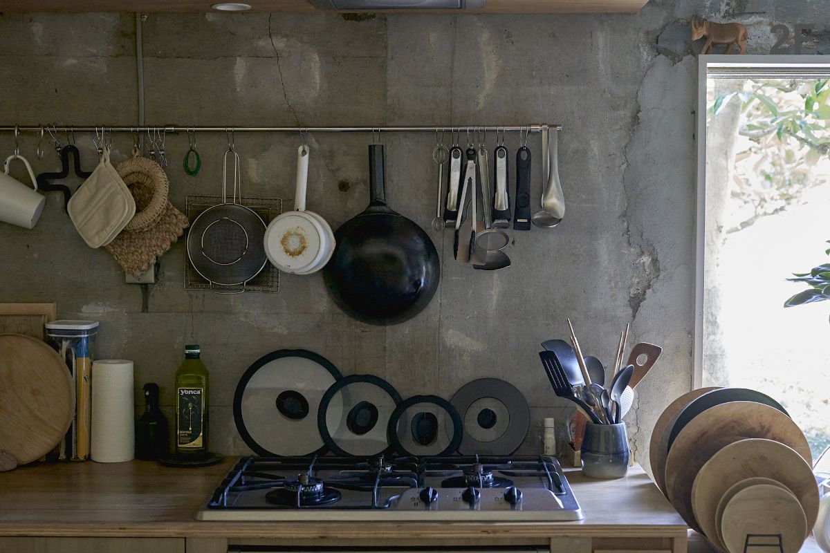 子供が増えた現在でも、昔から愛用している家具と最近買い足したもの、両方を組み合わせて今の気分を表現したインテリアスタイルを実現できるのは、鈴木さんならではのセンス。平日の朝やランチは、キッチンでコーヒーを飲んだり、軽食を取ることも多いといい、忙しい現在の暮らし方にもフィットした実用性も兼ねる。「そういうとき、キッチンの窓からちょっと外が見えるのも、いいなと思っています」。造作で加えた新しいキッチンカウンター越しには、緑のしげる緩やかな歩道が見える。外を眺めながら、創作の間にひと息つくのは、日常にある幸福な時間だ。